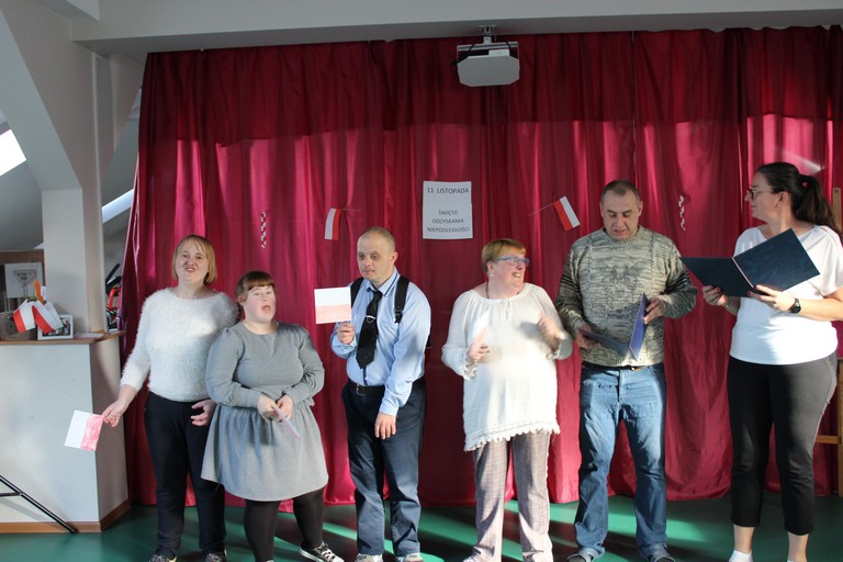 10 listopada w naszym Domu odbył się Przegląd Pieśni i Piosenki Patriotycznej zorganizowany przez pracownię informatyczną. Na początku spotkania Piotr jako prowadzący przedstawił kilka słów na temat Święta Niepodległości, po czym zapowiedział przegląd. Każda pracownia zaprezentowała się w innym utworze, a pomiędzy występami p. Asia czytała wiersze patriotyczne. Pracownia rękodzieła artystycznego zaśpiewała utwór - Płynie Wisła płynie, pracownia muzyczno-teatralna Przybyli Ułani, pracownia krawiecko dziewiarska Piechota, pracownia praktyczno-techniczna Kto ty jesteś, pracownia zachowań społecznych Serce w plecaku. Wystąpiły także w zespole p. kierownik wraz z p. Małgosią, p. Beatą oraz p. Kasią i zaśpiewały utwór Rozkwitały pąki białych róż. Przegląd zakończył występ pracowni informatycznej w utworze Deszcz jesienny deszcz. Na pamiątkę przeglądu każda pracownia otrzymała upominki w postaci patriotycznych zapinek. Pani kierownik zapewniła także niespodziankę – pyszne rogaliki marcińskie, które zjedliśmy na zakończenie imprezy.