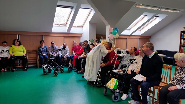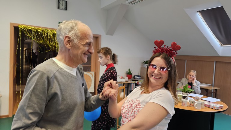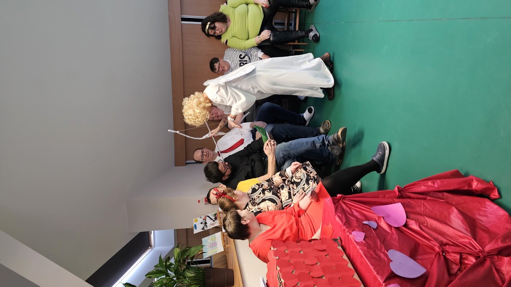 W międzyczasie można było skubnąć małe słodkie co nieco i wylosować karteczkę z miłym słowem. Pojawił się także niespodziewany gość - bożek miłości, który z iście niebiańskim wdziękiem wręczał nam kartki walentynkowe znalezione w skrzyneczce
