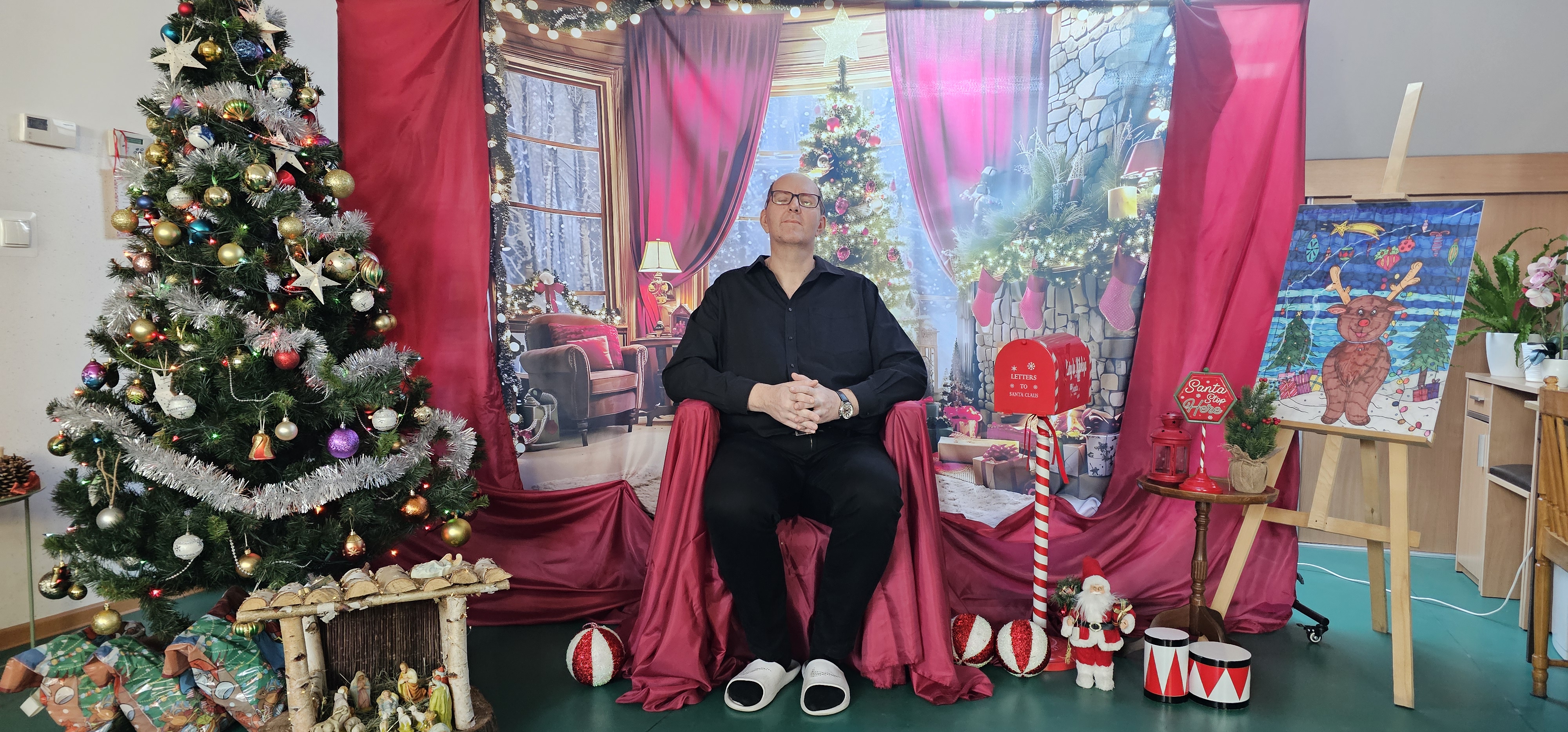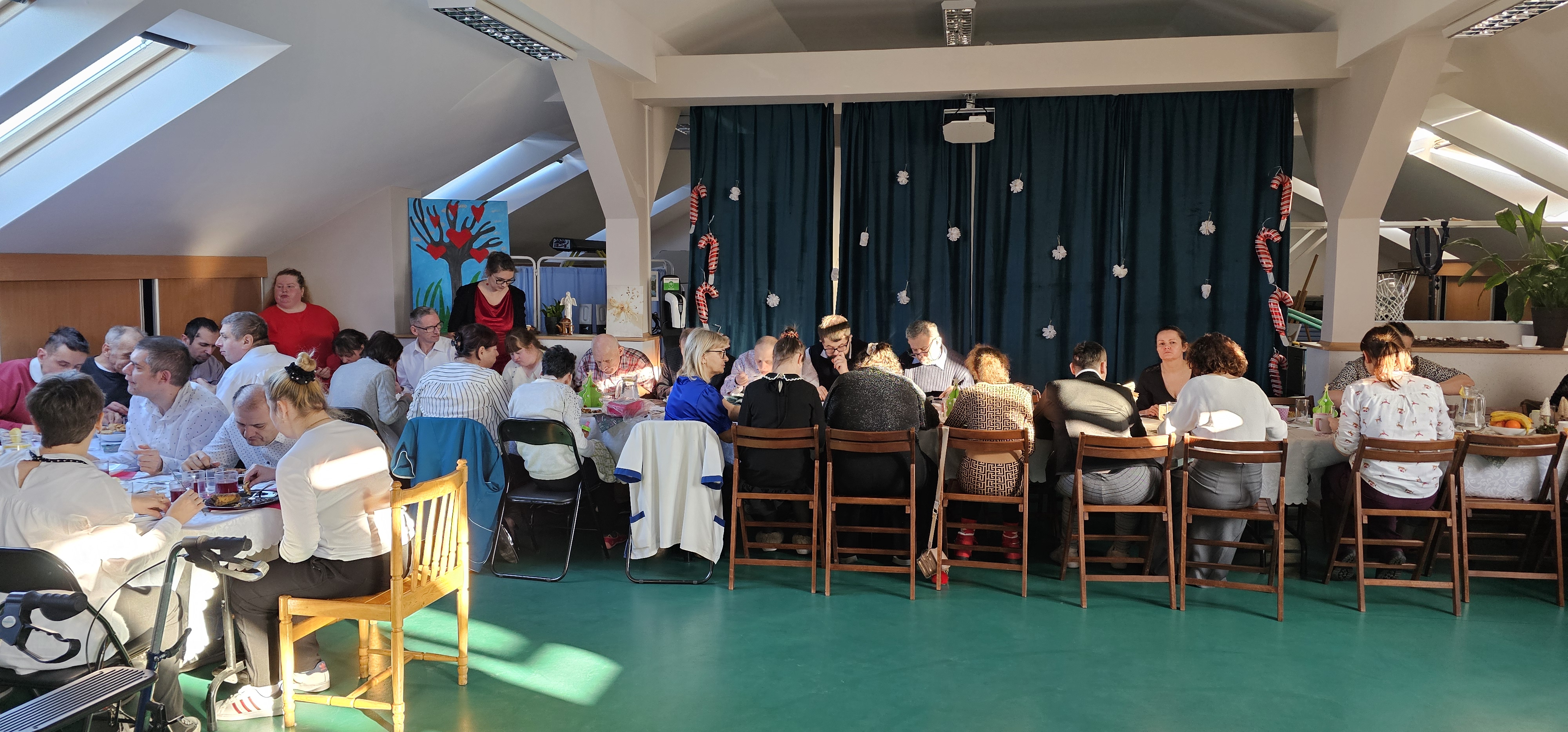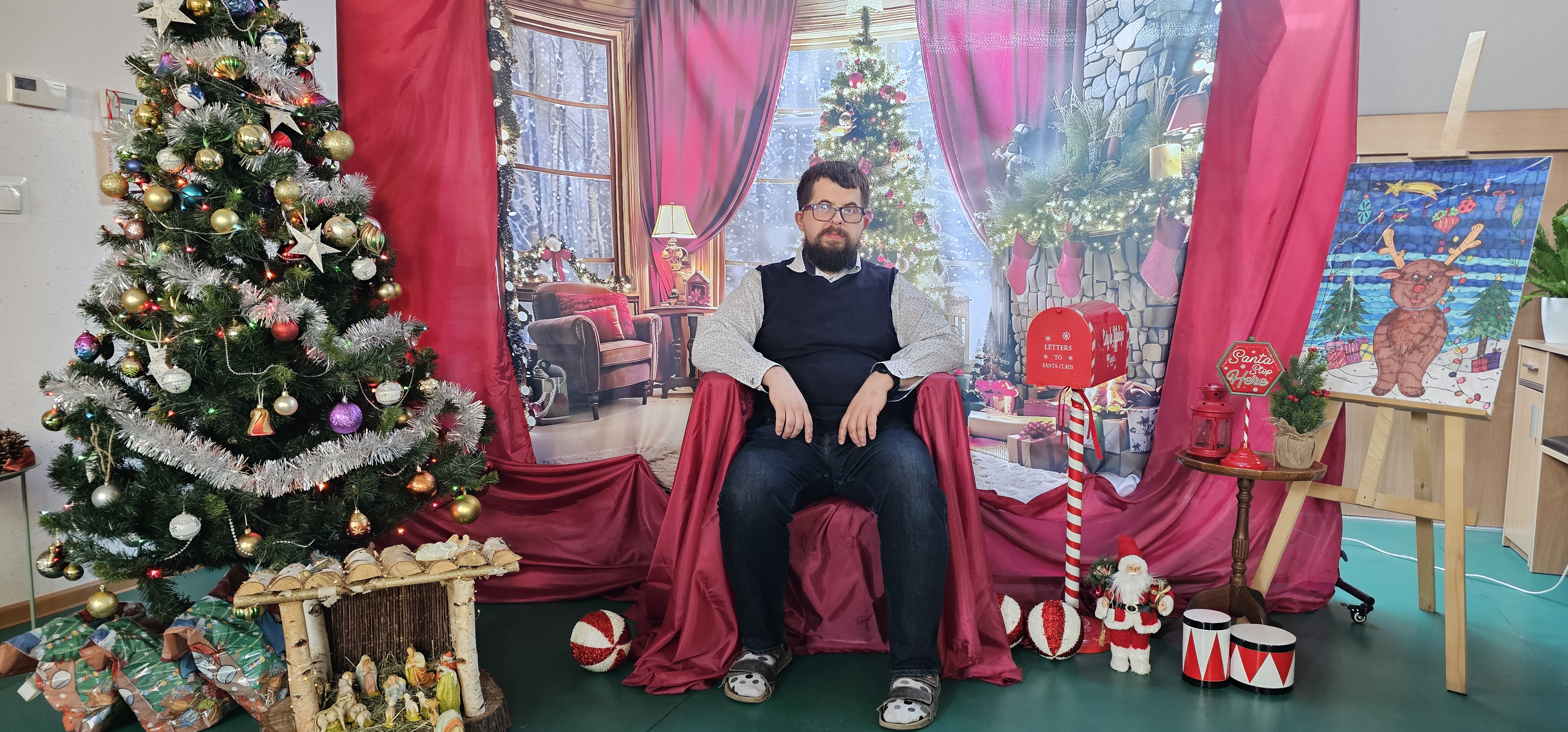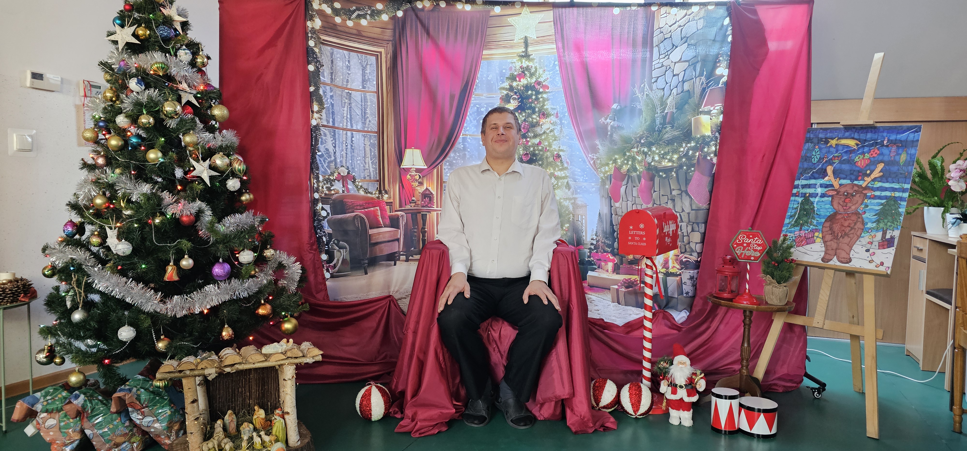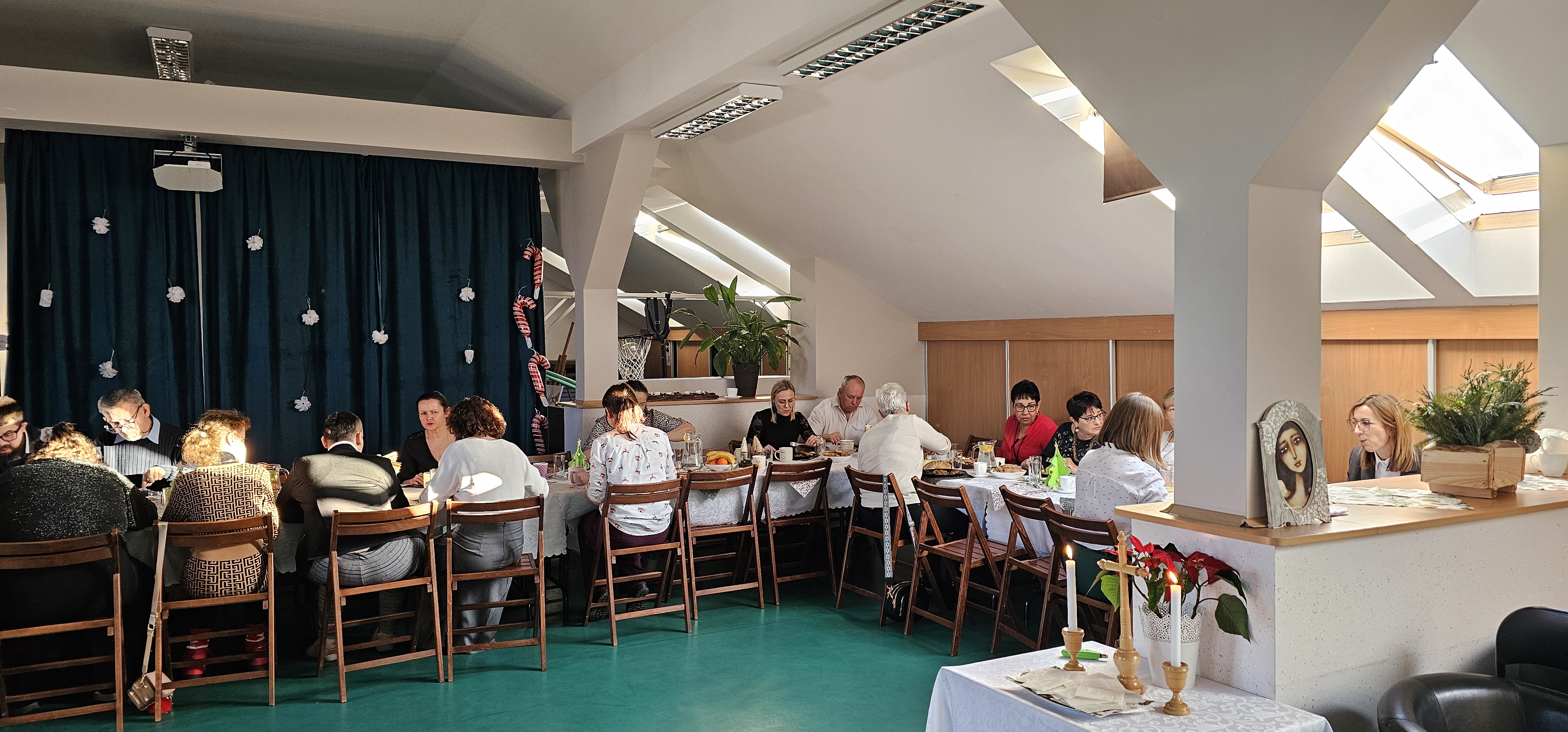 Spotkaliśmy się by zasiąść przy wspólnym stole, podzielić się opłatkiem i pokolędować. Nie zabrakło modlitwy, którą poprowadził ksiądz proboszcz Zbigniew, świątecznego występu przygotowanego przez p. Olę no i oczywiście prezentów. Na koniec pani Asia zrobiła nam sesję zdjęciową w świątecznej scenerii. Dziękujemy wszystkim gościom za obecność i słodkie upominki oraz Fundacji "Jesteśmy - więc pomagamy", która tradycyjnie przygotowała dla nas paczki świąteczne. Rodzicom i opiekunom dziękujemy za pyszne placki na świąteczny stół.