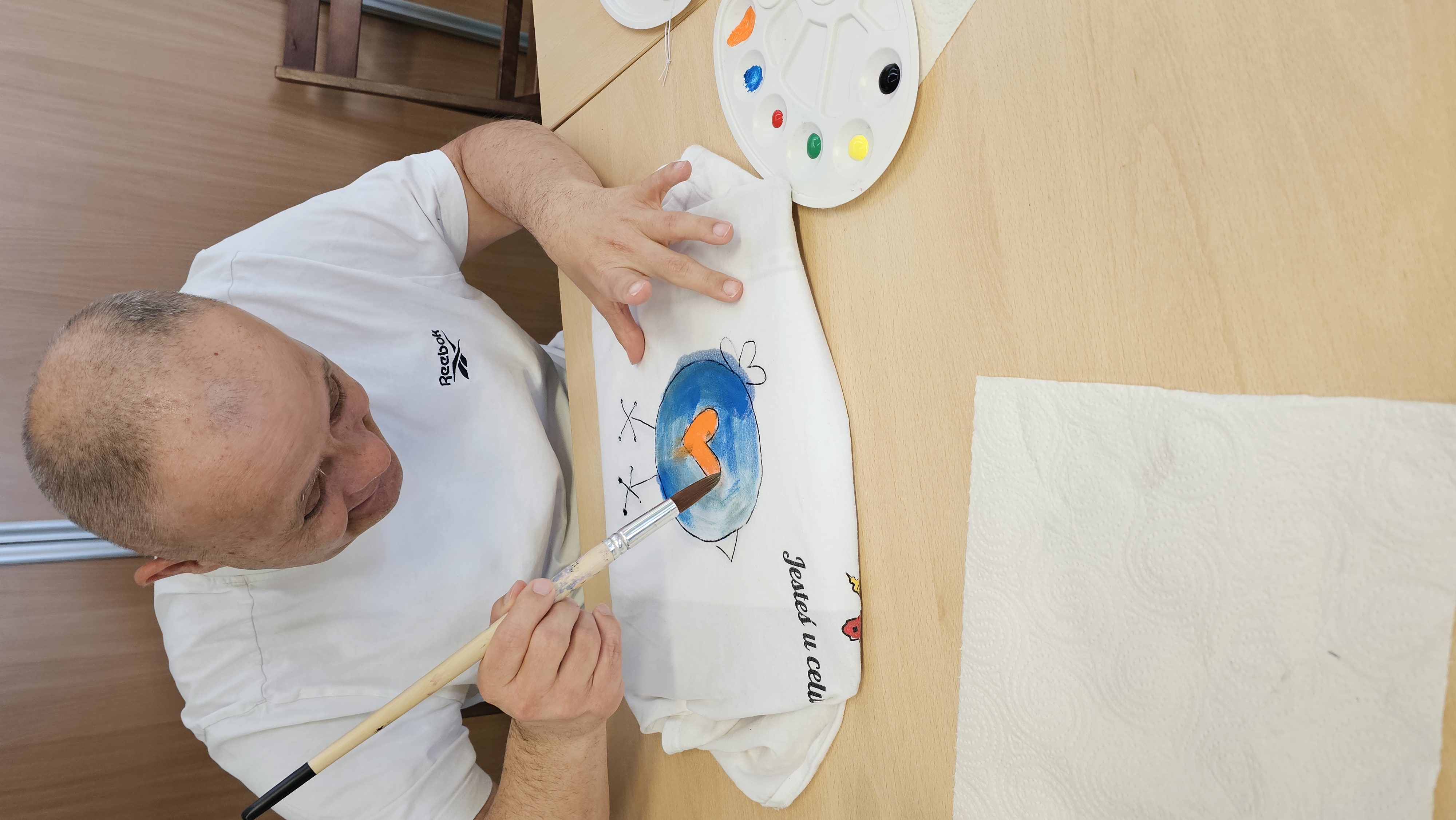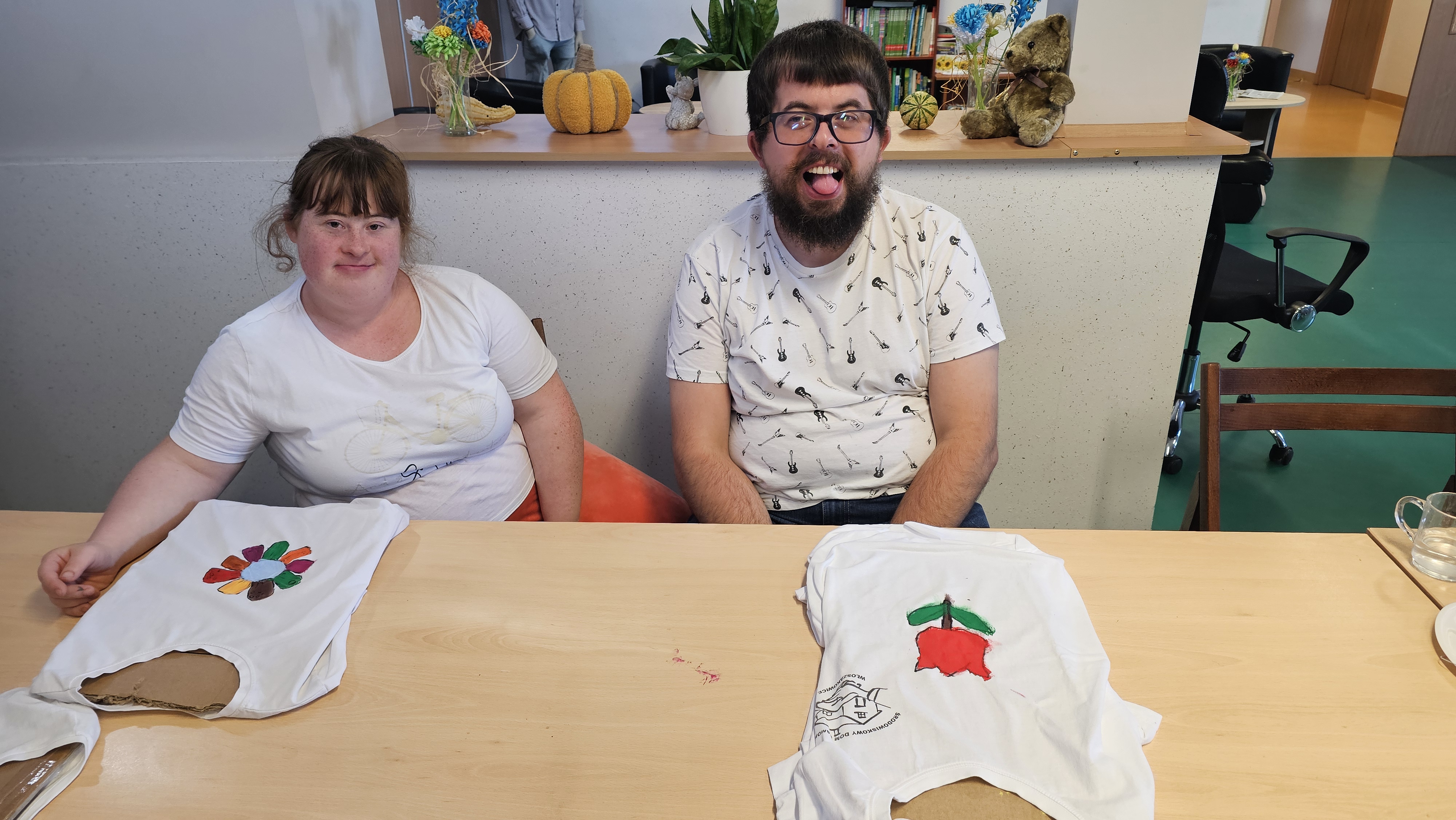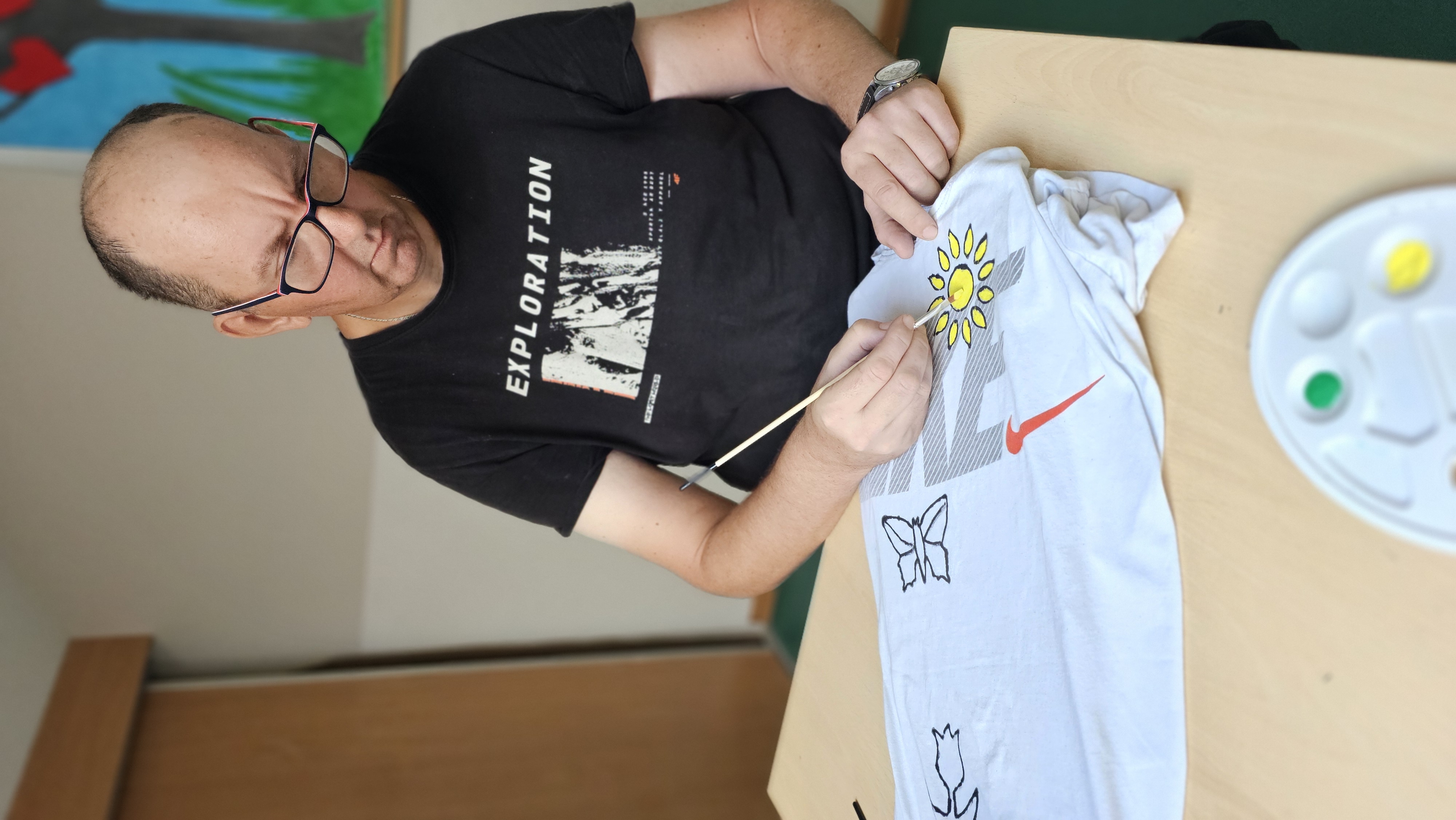 Mieliśmy okazję uczestniczyć w warsztatach malowania koszulek, które przeprowadziły panie z Fundacji "Sztuka" w ramach projektu wspieranego przez powiat leszczyński. Zajęcia okazały się niezwykle interesujące- z dużym zaangażowaniem tworzyliśmy własne niepowtarzalne obrazy. Każdy z nas z dumą zakończył pracę, ciesząc się z samodzielnie ozdobionej koszulki.![]()