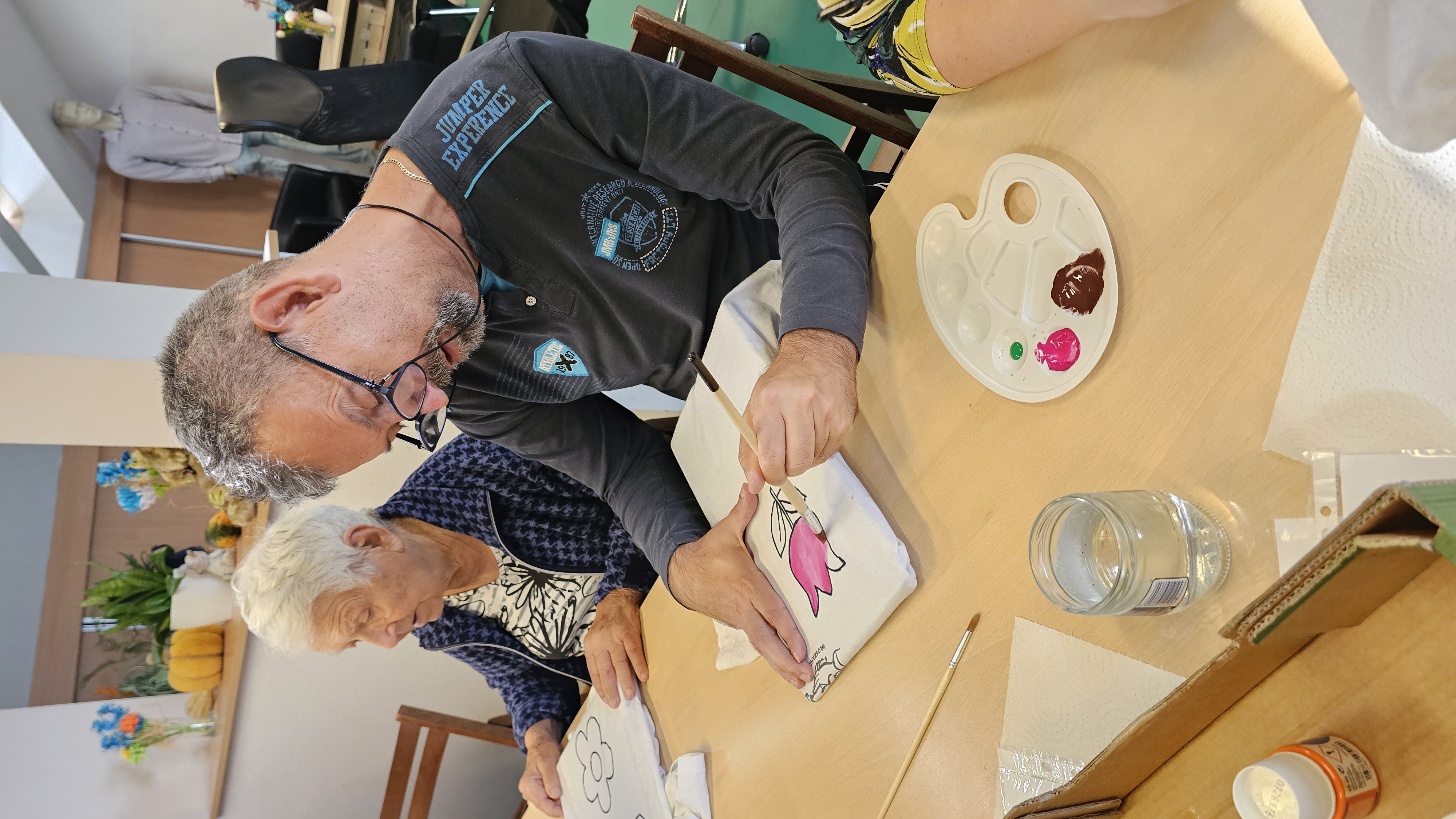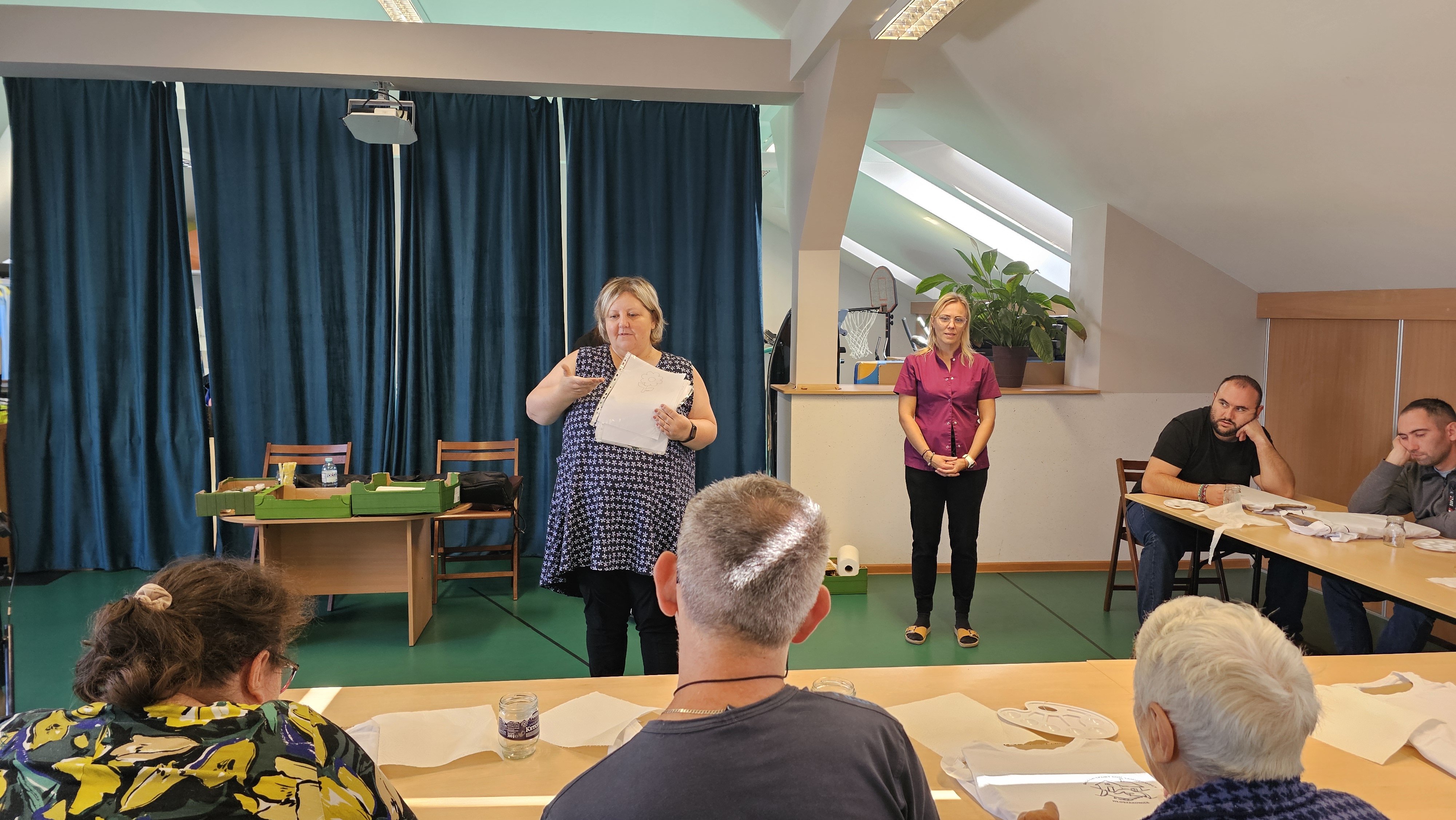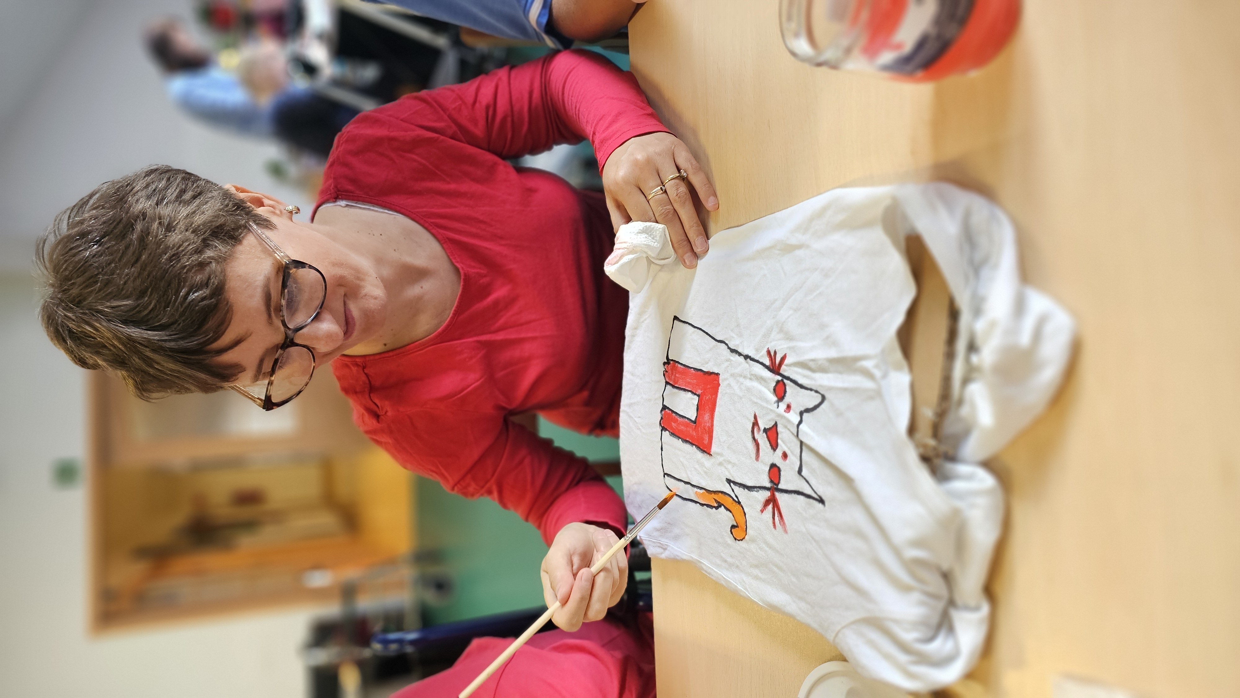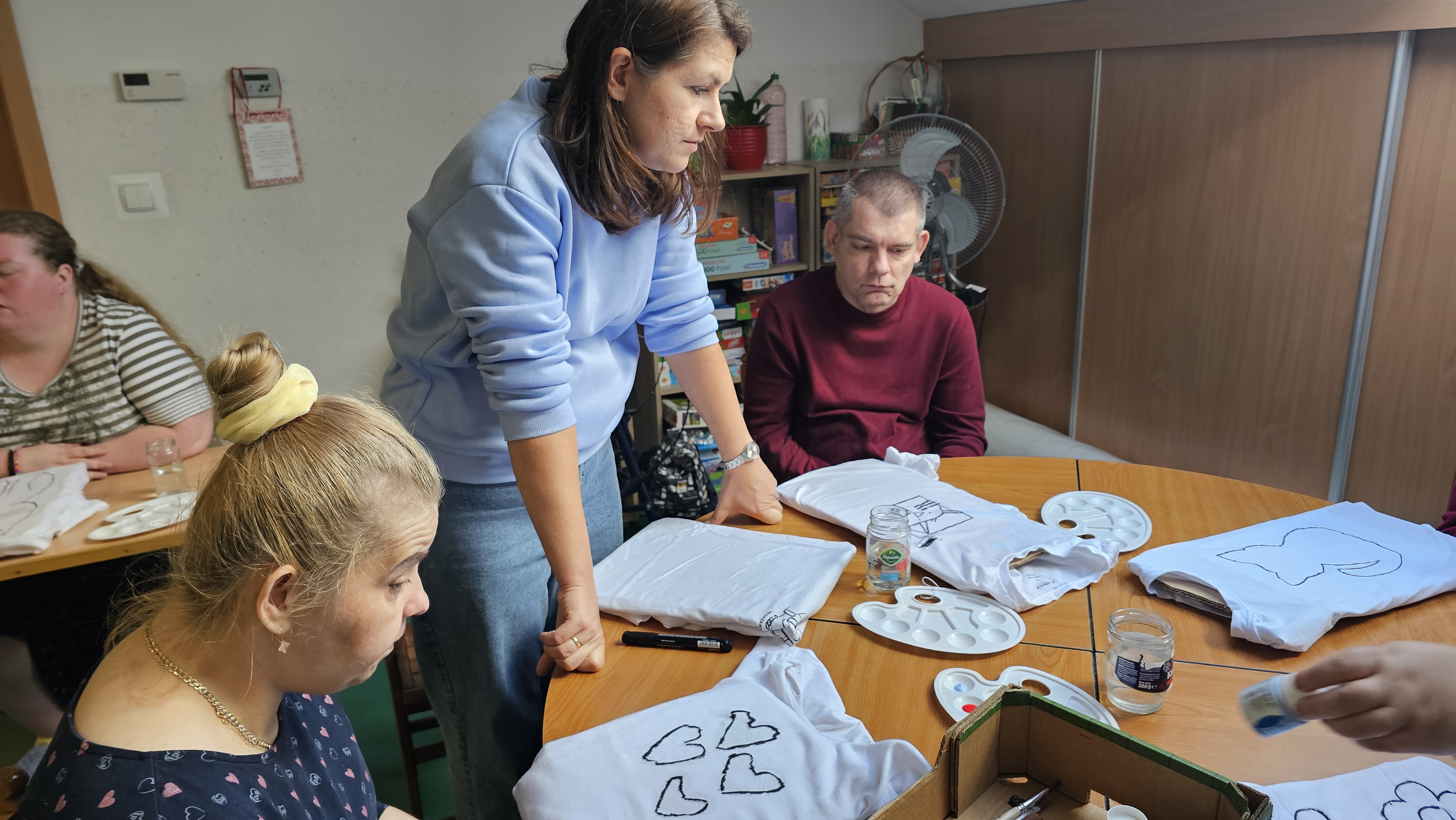 Mieliśmy okazję uczestniczyć w warsztatach malowania koszulek, które przeprowadziły panie z Fundacji "Sztuka" w ramach projektu wspieranego przez powiat leszczyński. Zajęcia okazały się niezwykle interesujące- z dużym zaangażowaniem tworzyliśmy własne niepowtarzalne obrazy. Każdy z nas z dumą zakończył pracę, ciesząc się z samodzielnie ozdobionej koszulki.![]()