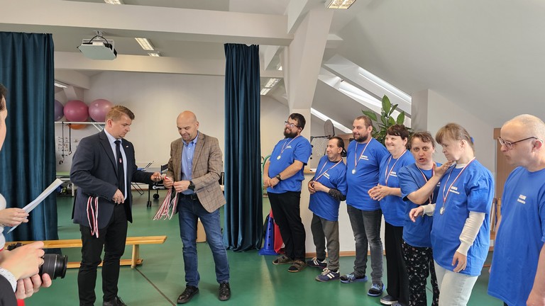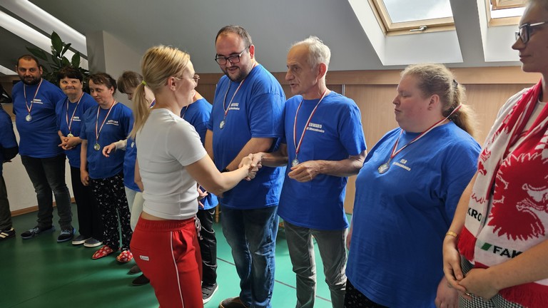 Rywalizacja pomiędzy drużynami była zacięta, ale oczywiście wszystko zgodnie z zasadami fair play. Zawody dostarczyły nam sporo dobrej zabawy i dużą dawkę śmiechu. Towarzyszyli nam pan wójt Marek Wąsowicz oraz kierownik Gminnego Ośrodka Sportu i Rekreacji pan Arkadiusz Szymczak, którzy na zakończenie zawodów wręczyli medale zwycięskim drużynom![]()