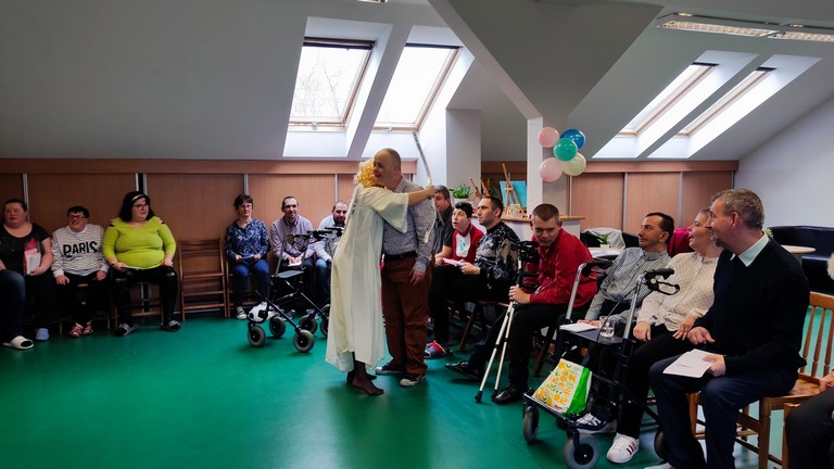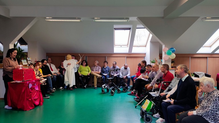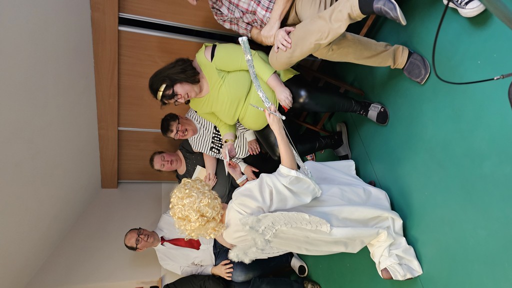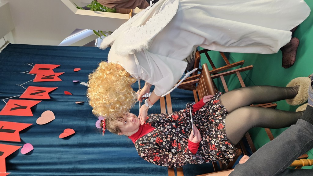 W międzyczasie można było skubnąć małe słodkie co nieco i wylosować karteczkę z miłym słowem. Pojawił się także niespodziewany gość - bożek miłości, który z iście niebiańskim wdziękiem wręczał nam kartki walentynkowe znalezione w skrzyneczce