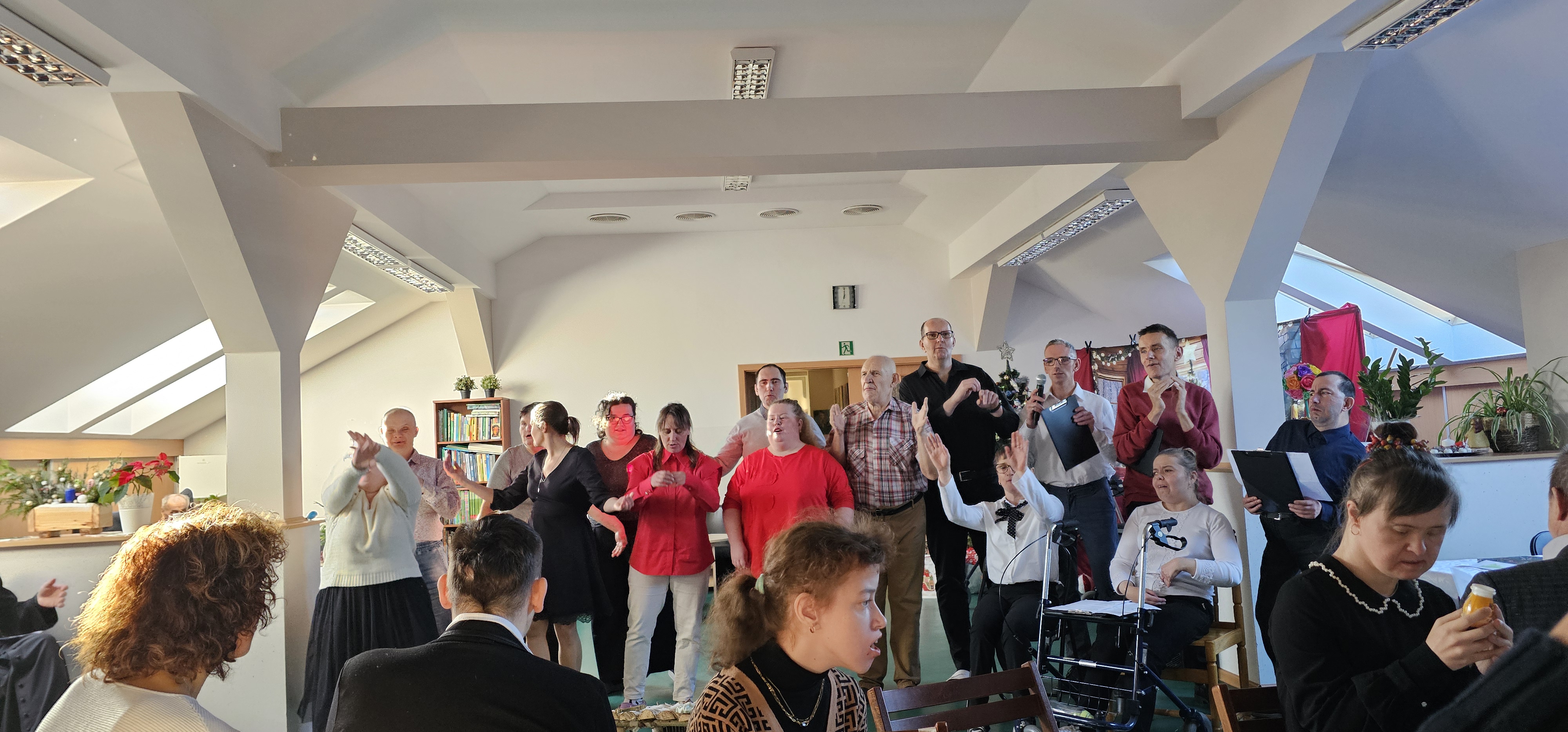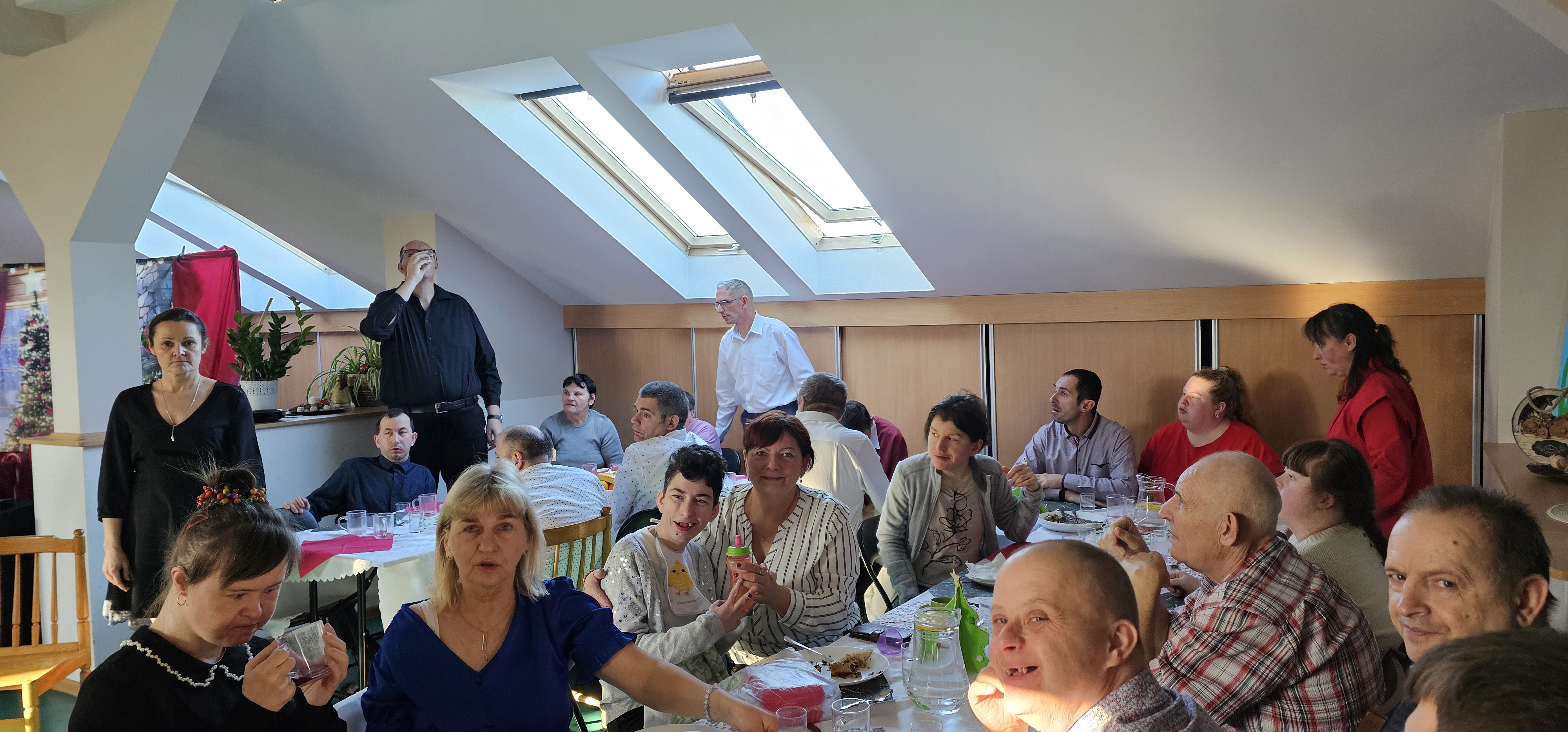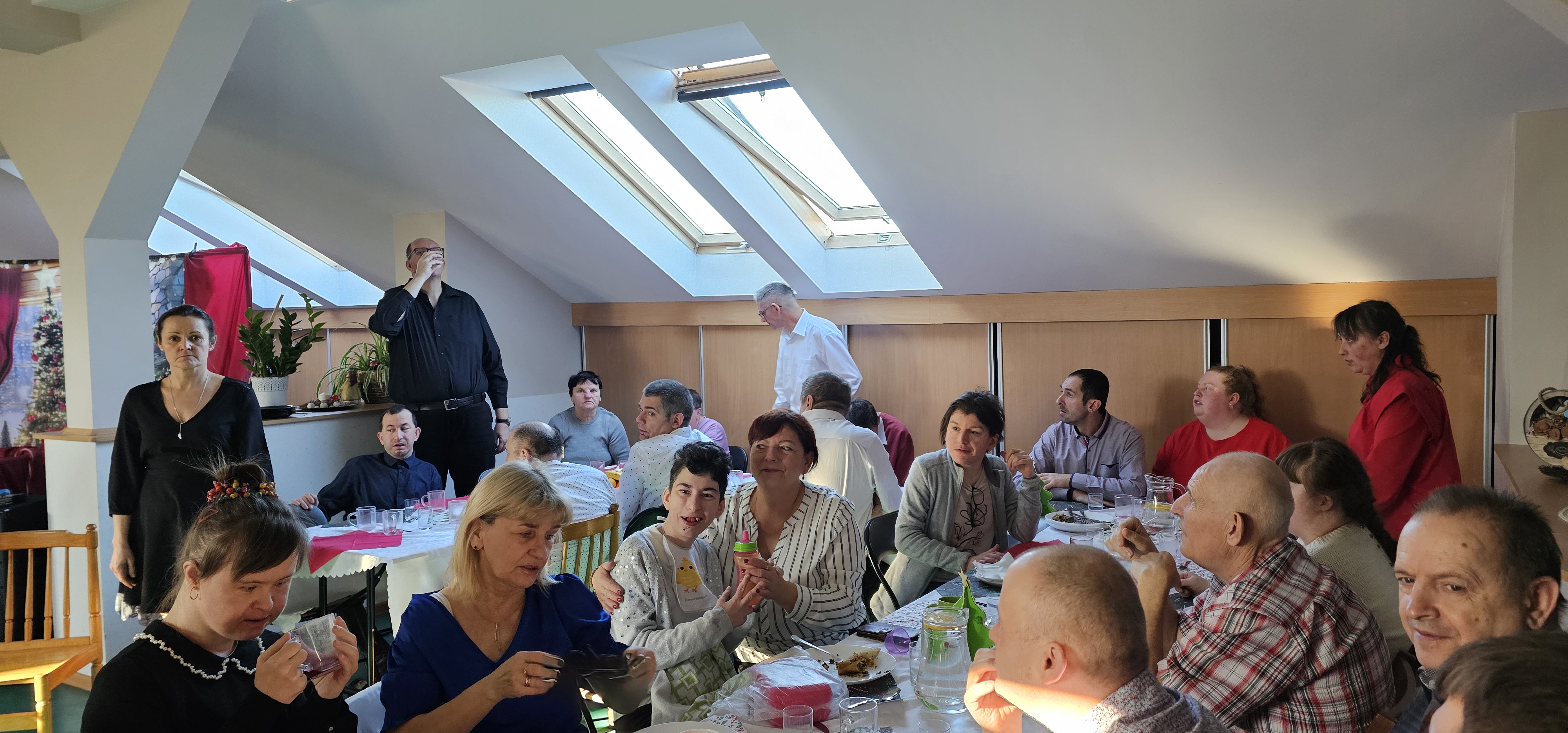 Spotkaliśmy się by zasiąść przy wspólnym stole, podzielić się opłatkiem i pokolędować. Nie zabrakło modlitwy, którą poprowadził ksiądz proboszcz Zbigniew, świątecznego występu przygotowanego przez p. Olę no i oczywiście prezentów. Na koniec pani Asia zrobiła nam sesję zdjęciową w świątecznej scenerii. Dziękujemy wszystkim gościom za obecność i słodkie upominki oraz Fundacji "Jesteśmy - więc pomagamy", która tradycyjnie przygotowała dla nas paczki świąteczne. Rodzicom i opiekunom dziękujemy za pyszne placki na świąteczny stół.