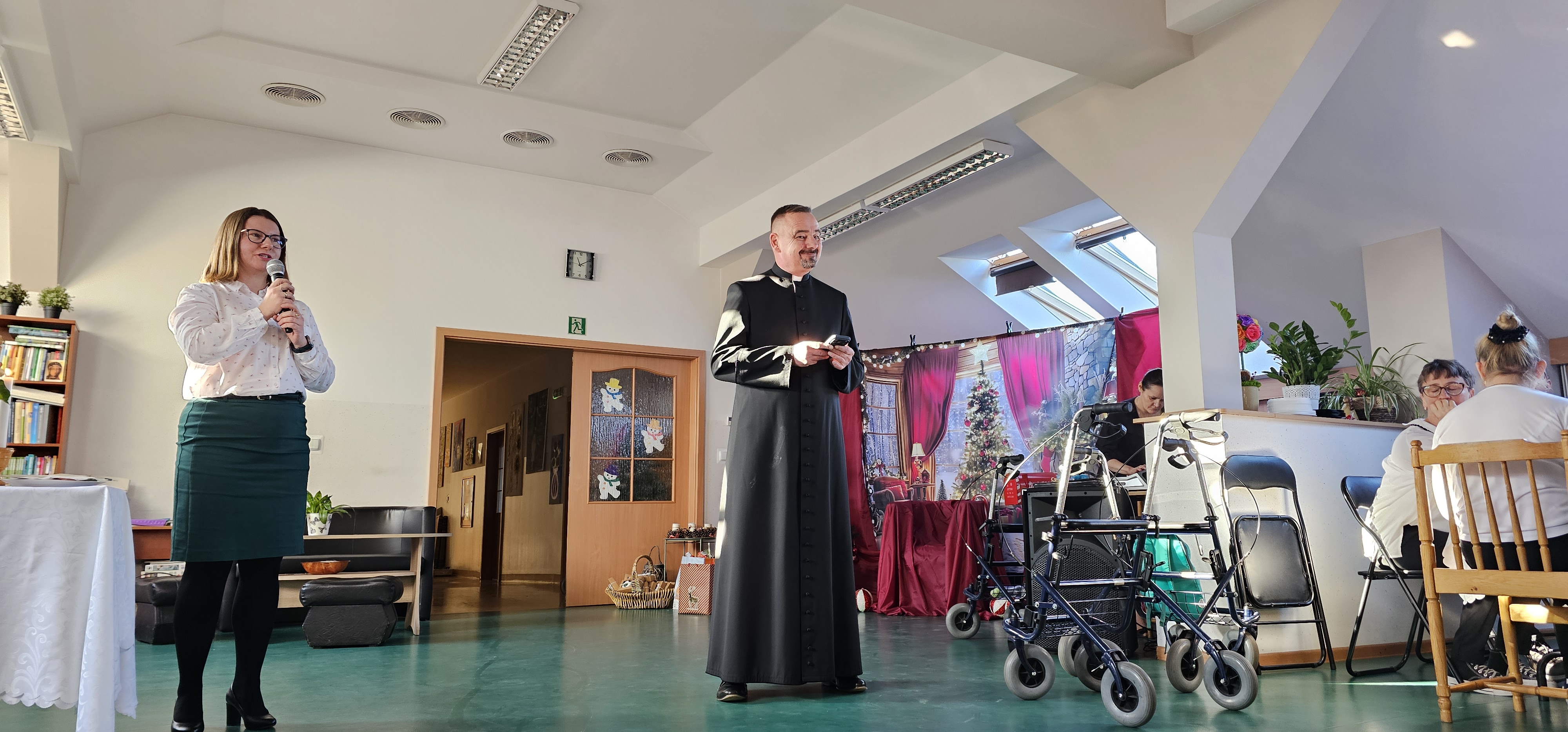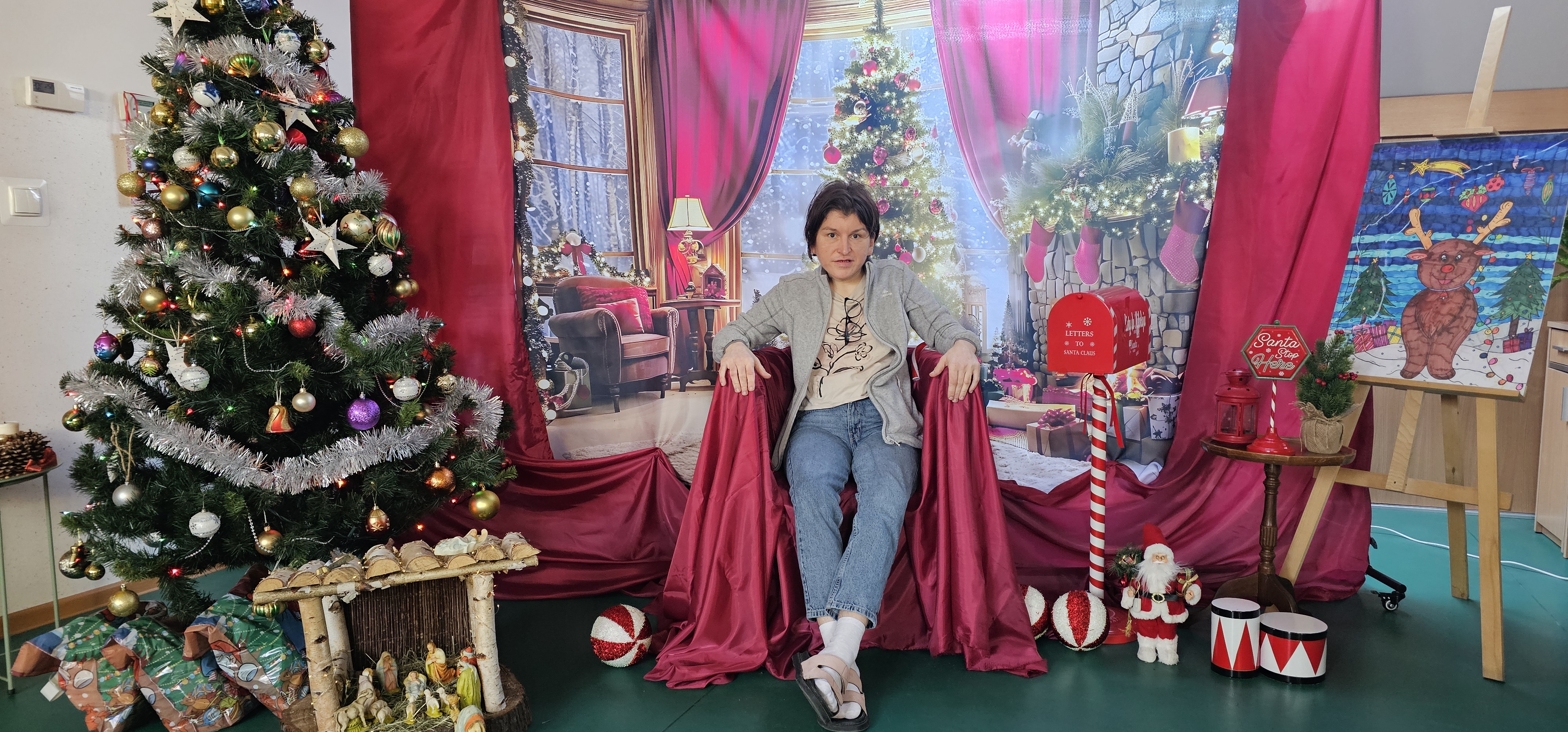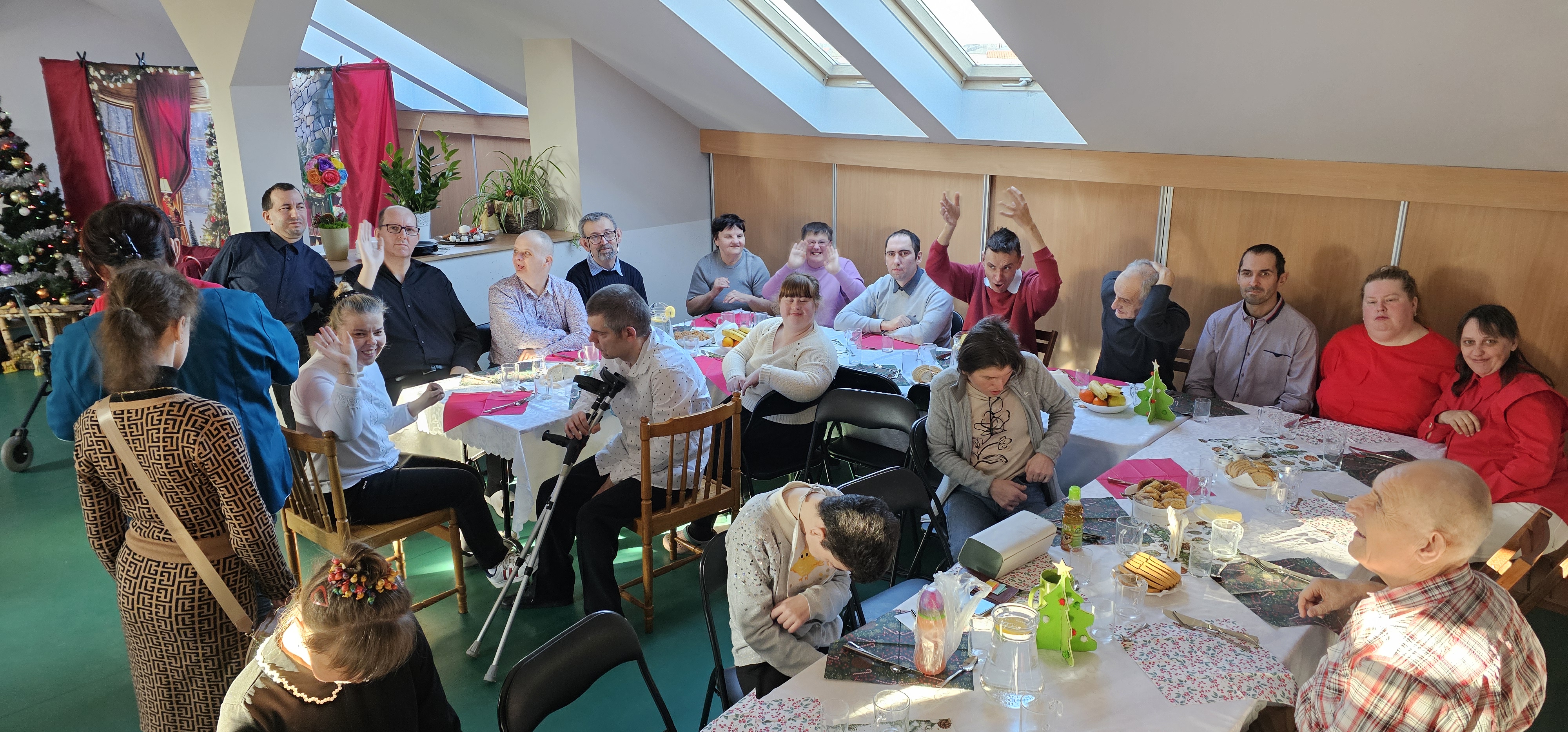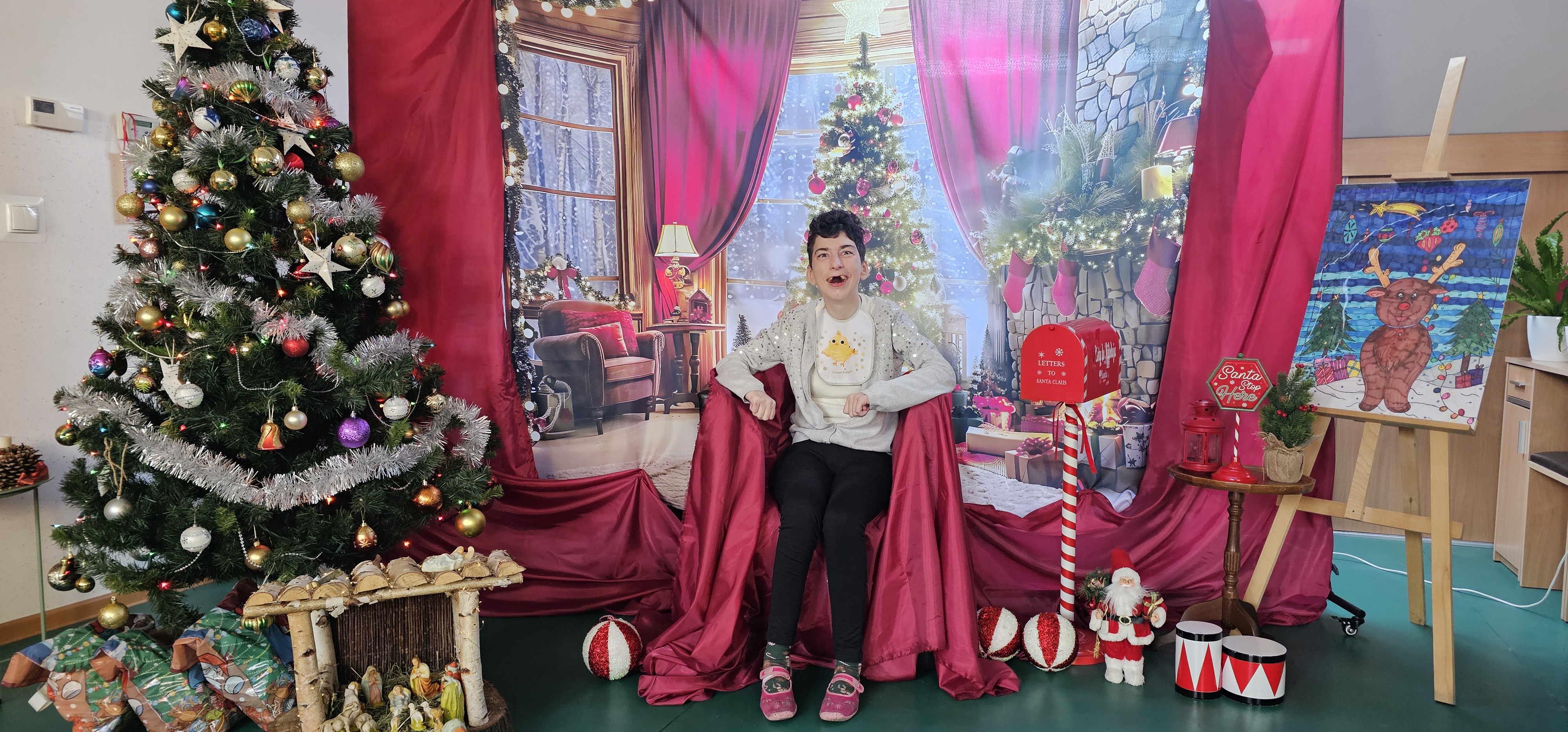 Spotkaliśmy się by zasiąść przy wspólnym stole, podzielić się opłatkiem i pokolędować. Nie zabrakło modlitwy, którą poprowadził ksiądz proboszcz Zbigniew, świątecznego występu przygotowanego przez p. Olę no i oczywiście prezentów. Na koniec pani Asia zrobiła nam sesję zdjęciową w świątecznej scenerii. Dziękujemy wszystkim gościom za obecność i słodkie upominki oraz Fundacji "Jesteśmy - więc pomagamy", która tradycyjnie przygotowała dla nas paczki świąteczne. Rodzicom i opiekunom dziękujemy za pyszne placki na świąteczny stół.