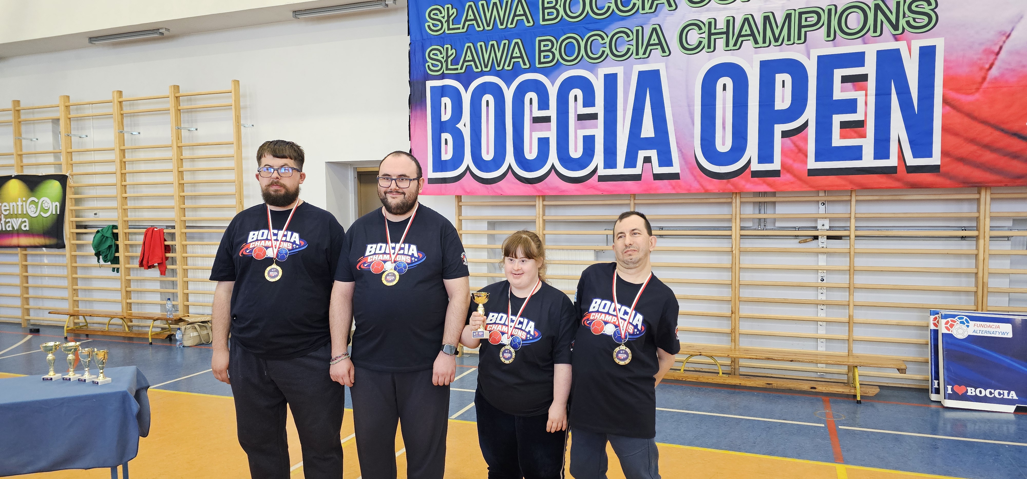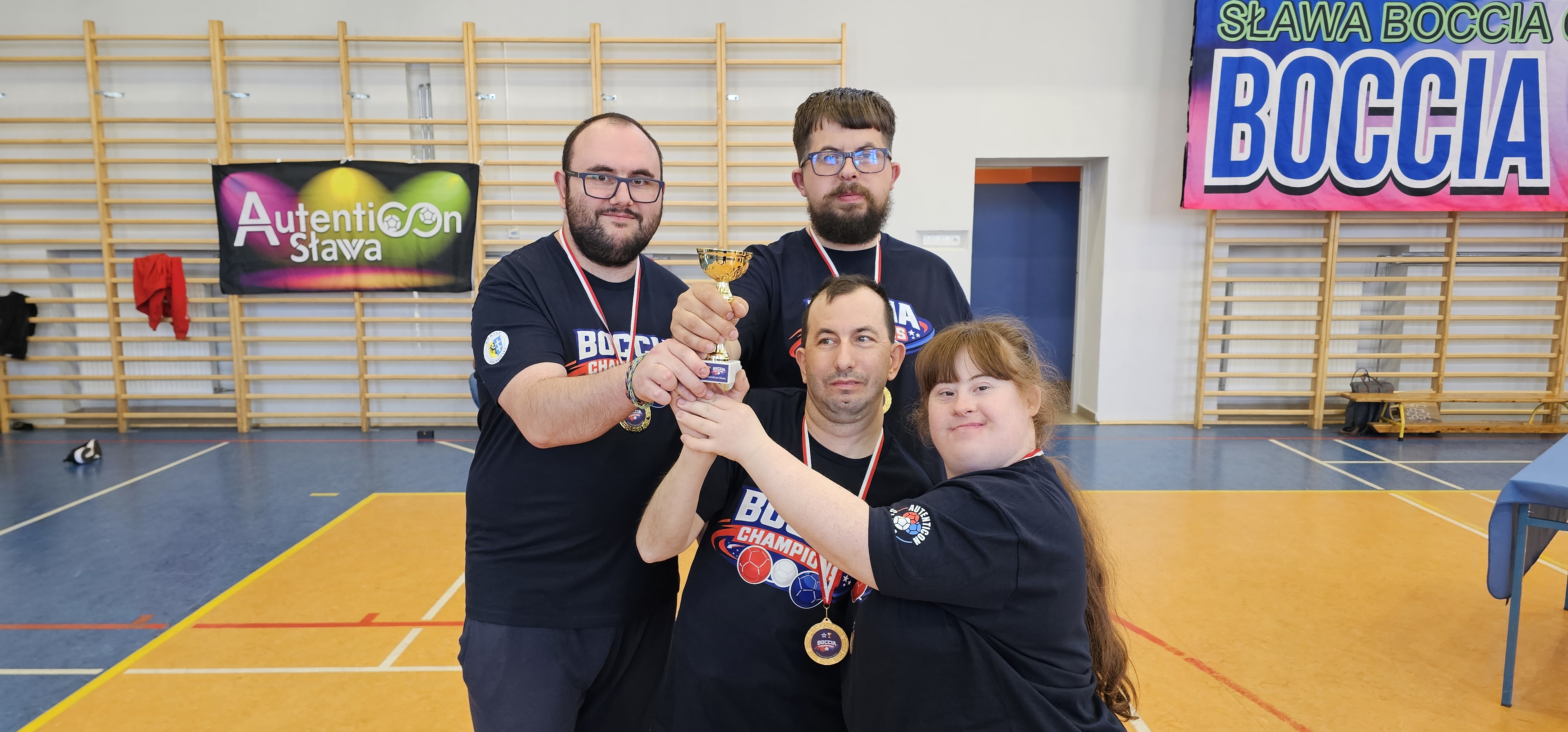 W zawodach brało udział 12 drużyn z trzech województw: wielkopolskiego lubuskiego i dolnośląskiego. Nasza drużyna zajęła siódme miejsce. W skład zespołu wchodzili Kornelia, Konrad, Mateusz oraz Piotr K. Graliśmy w grupie A, gdzie udało nam się odnieść 2 zwycięstwa. Atmosfera podczas zawodów była bardzo przyjemna, a sama zabawa sprawiła nam dużo radości. Dodatkowo mogliśmy skorzystać z poczęstunku, były bardzo smaczne drożdżówki, pizzerinki oraz kawa i herbata. Otrzymaliśmy puchar oraz koszulki, a na koniec zrobiliśmy wspólne zdjęcie. Z turnieju wróciliśmy uśmiechnięci i zadowoleni. Dziękujemy fundacji Autenticon za zaproszenie![]()