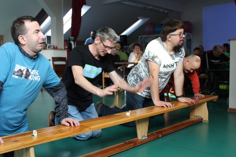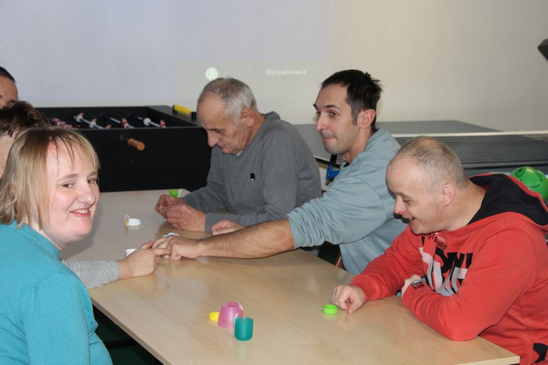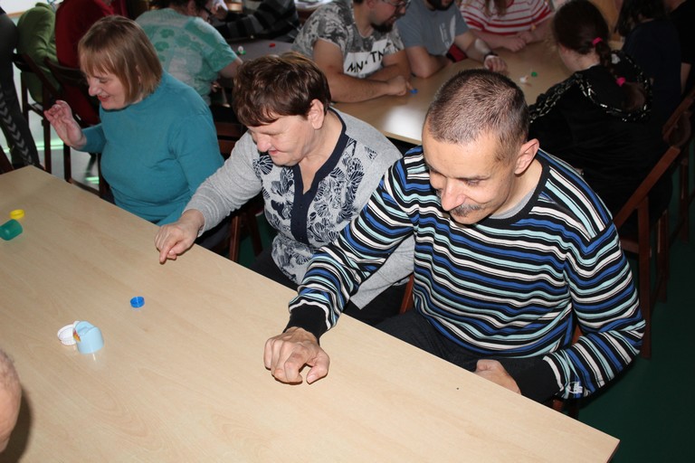 Pani Beata przygotowała nie lada turniej, do którego przygotowaniem były filmy edukacyjne wyjaśniające zasady gry. Po teoretycznym wstępie podzieleni zostaliśmy na dwie drużyny i przystąpiliśmy do gry w kapslowe dwa ognie. Zabawy i śmiechu było co nie miara, ale też radości, że każdy mógł zagrać. Po drużynowych starciach niektórzy rywalizowali indywidualnie w konkurencji: jak najdalej pstryknięty kapsel. Podsumowaniem dnia był pokazowy mecz w dwa ognie rozegrany przez kilku uczestników. Kolejny emocjonujący dzień za nami.