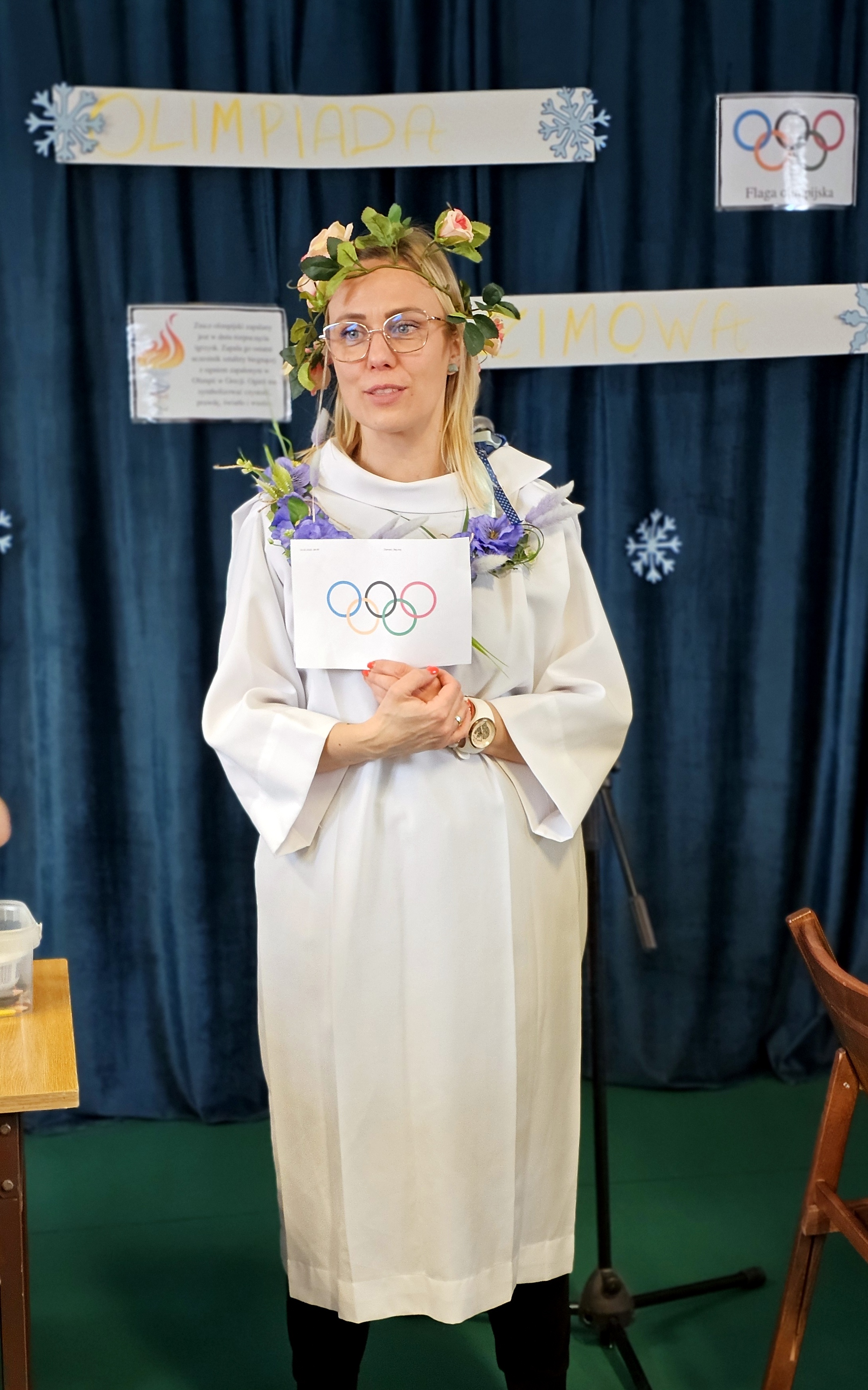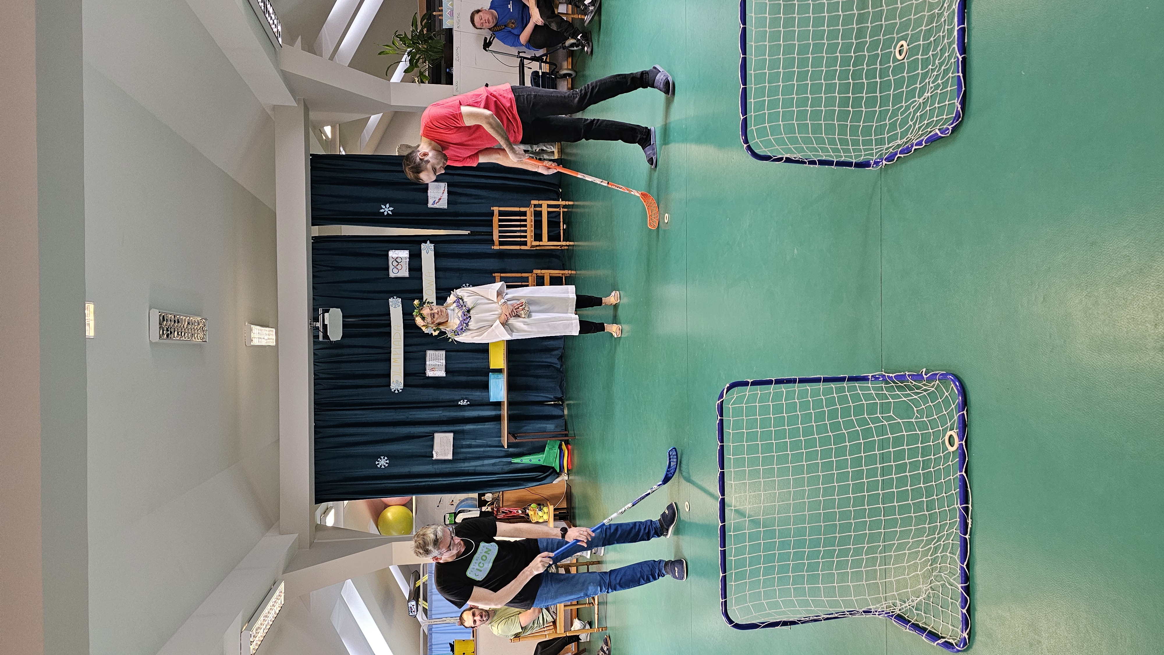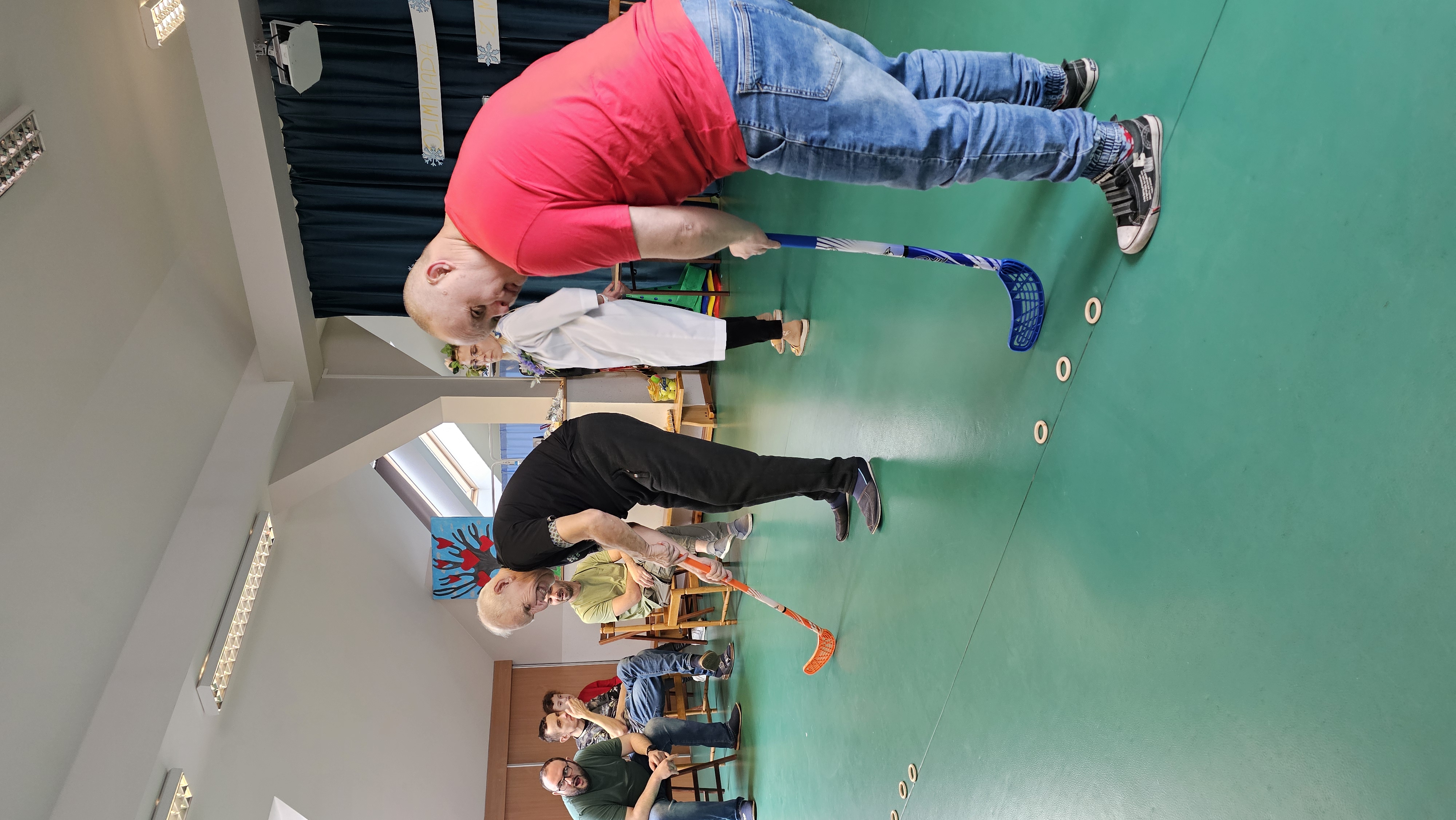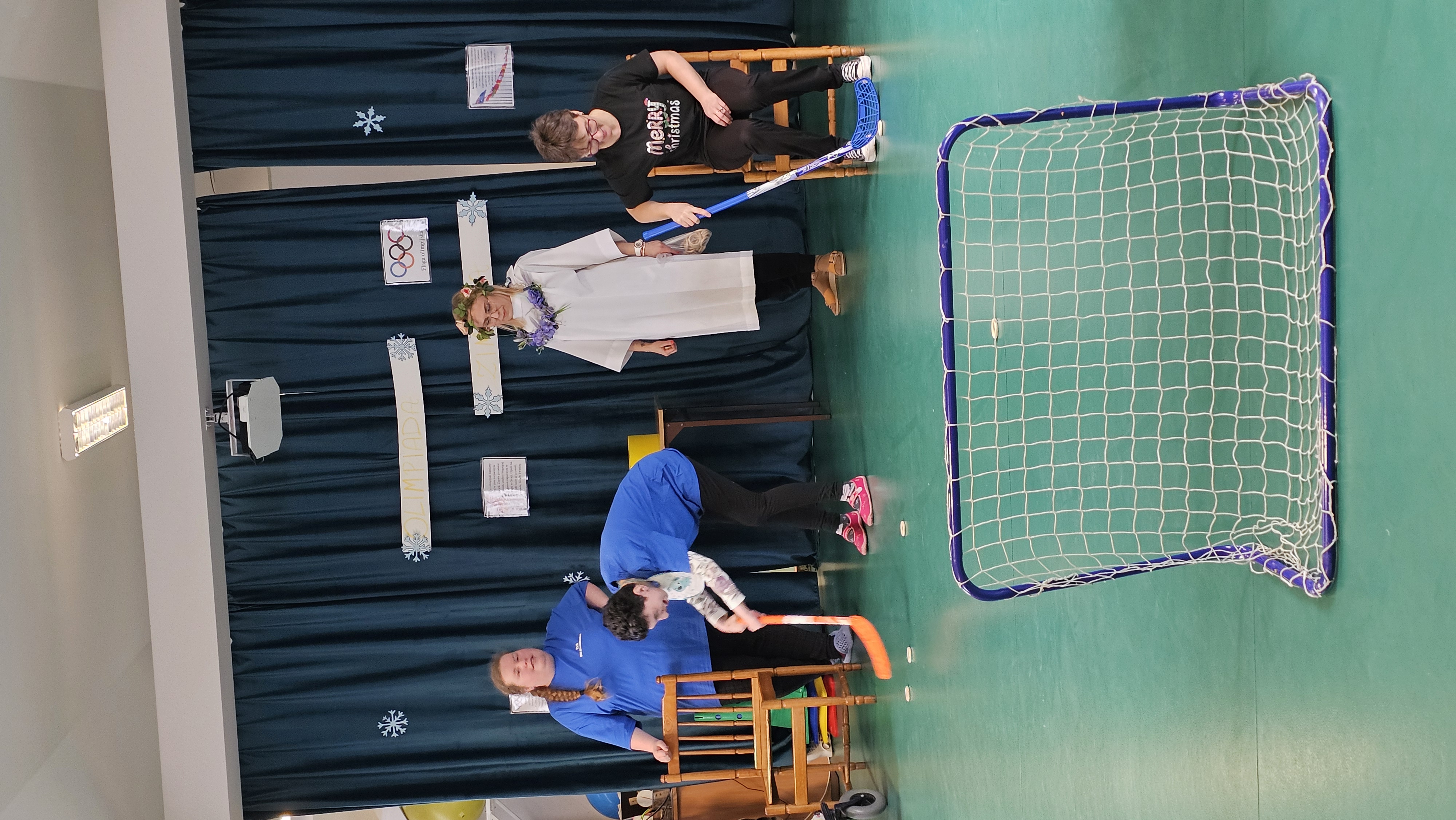 Najpierw było trochę teorii, żebyśmy sobie przypomnieli na czym polega olimpiada i jakie są jej symbole. Zostaliśmy podzieleni na 5 drużyn i ubrani w koszulki w kolorach kół olimpijskich, które splecione ze sobą reprezentują pięć kontynentów świata, połączonych ideą olimpijską. Każda drużyna reprezentowała zatem inny kontynent. Swoją wiedzę mogliśmy sprawdzić rozwiązując quizy i za pomocą kolorowanki. Olimpiada to jednak przede wszystkim sport i rywalizacja, więc był bieg z ogniem olimpijskim, saneczkarstwo i hokej. Zabawa była świetna! Dziękujemy pani Beacie za tą sportową rozrywkę![]()