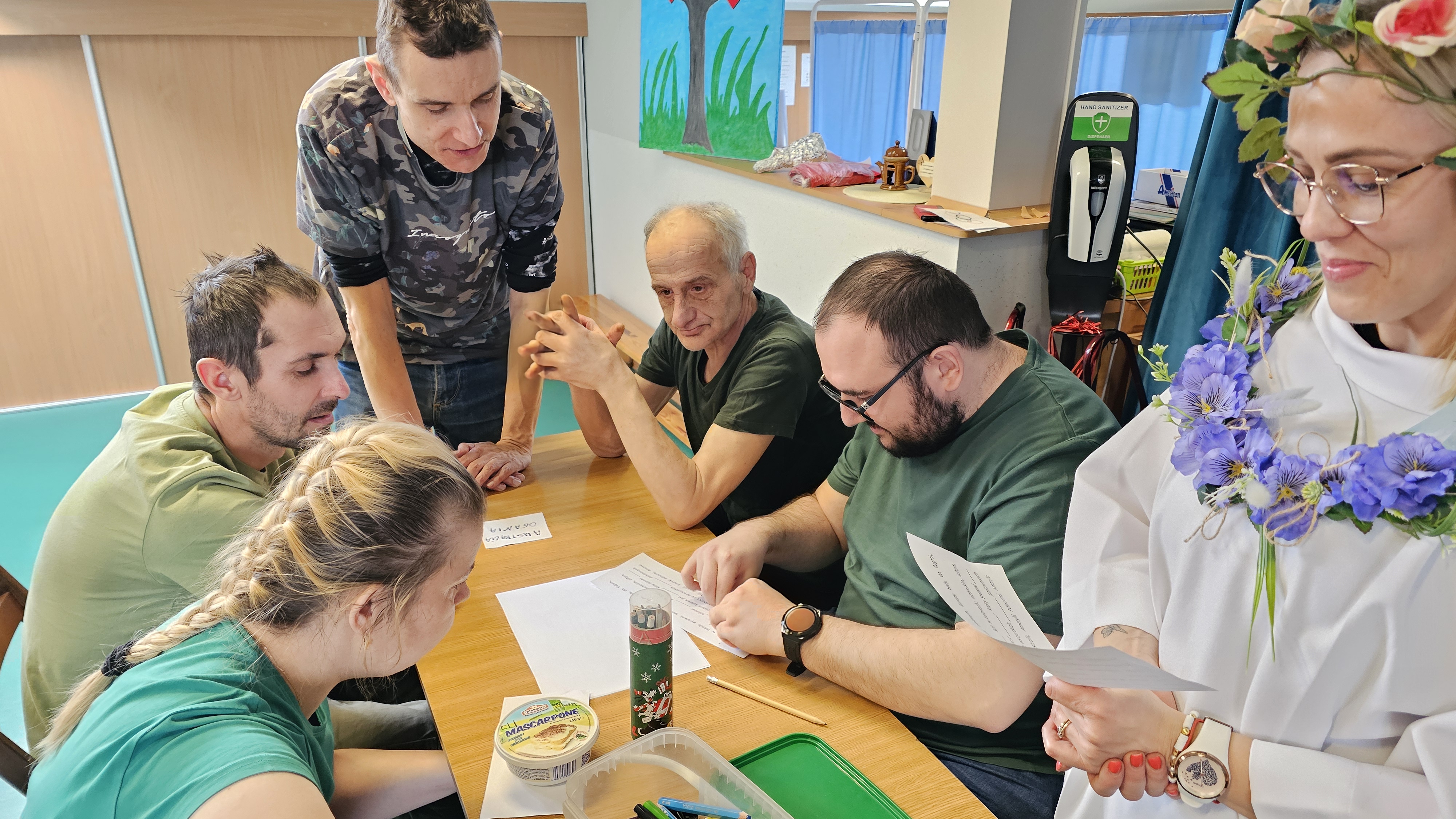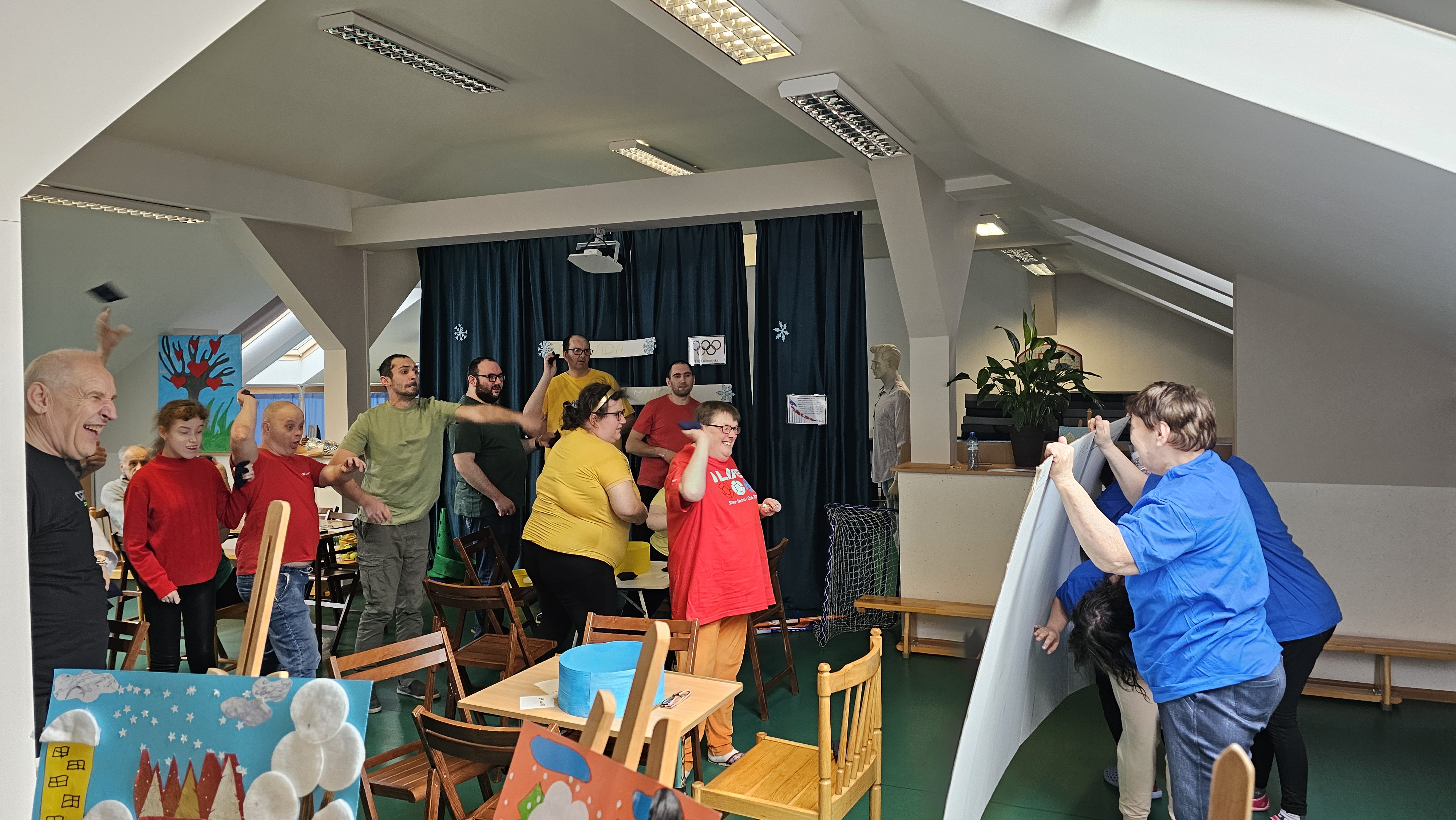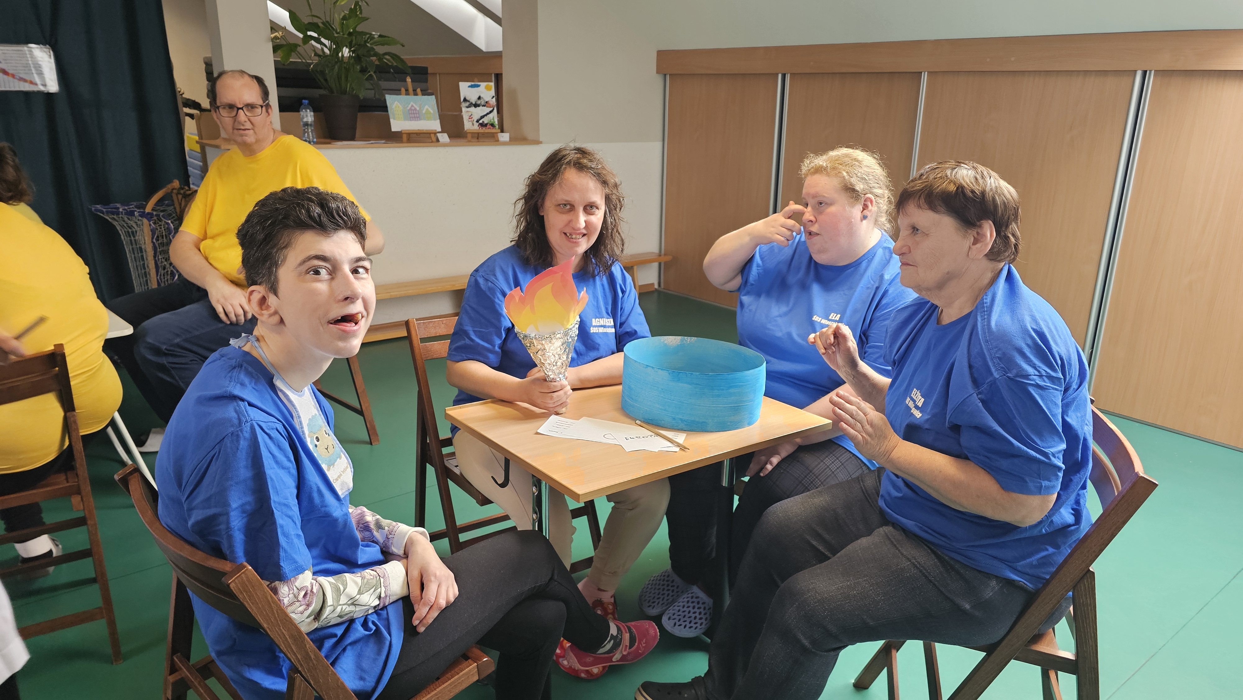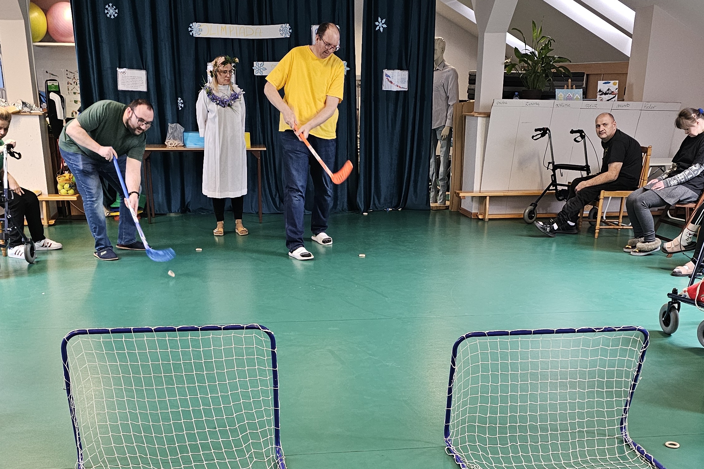 Najpierw było trochę teorii, żebyśmy sobie przypomnieli na czym polega olimpiada i jakie są jej symbole. Zostaliśmy podzieleni na 5 drużyn i ubrani w koszulki w kolorach kół olimpijskich, które splecione ze sobą reprezentują pięć kontynentów świata, połączonych ideą olimpijską. Każda drużyna reprezentowała zatem inny kontynent. Swoją wiedzę mogliśmy sprawdzić rozwiązując quizy i za pomocą kolorowanki. Olimpiada to jednak przede wszystkim sport i rywalizacja, więc był bieg z ogniem olimpijskim, saneczkarstwo i hokej. Zabawa była świetna! Dziękujemy pani Beacie za tą sportową rozrywkę![]()
