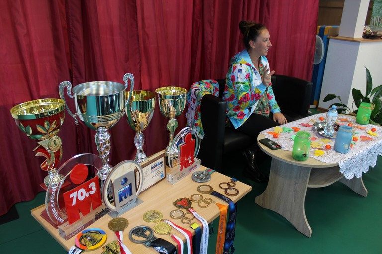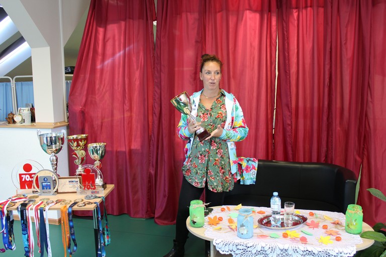 Pani Agnieszka dwukrotnie uczestniczyła w Igrzyskach Olimpijskich (Londyn 2012 i Rio 2016), kilkakrotnie osiągnęła mistrzostwo świata, Europy i Polski, jest rekordzistką triathlonu w Polsce kobiet na dystansie olimpijskim. Rada Domu przygotowała całą listę pytań, na które nasz gość odpowiadał dzielnie z niegasnącym uśmiechem przez całą godzinę. Opowieści były bardzo ciekawe, a niektóre nawet zabawne. Mieliśmy okazję zobaczyć i dotknąć pucharów i medali wywalczonych przez panią Agnieszkę. Przekonaliśmy się, że sport zawodowy wymaga wielu wyrzeczeń i dyscypliny, z którą u nas krucho, więc z przykrością musieliśmy stwierdzić, że my się do tego nie nadajemy ;). Na zakończenie spotkania wręczyliśmy naszemu gościowi podziękowanie i drobny upominek. Cieszymy się, że pani Agnieszka znalazła dla nas czas i mamy nadzieję, że jeszcze się kiedyś spotkamy.
