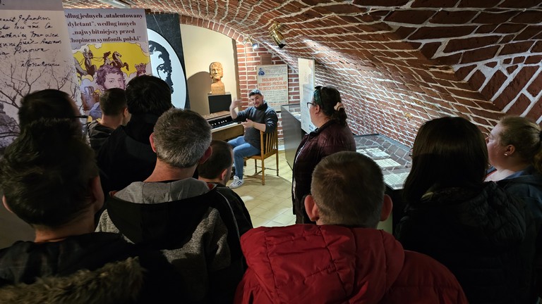 Udało nam się ich znaleźć całkiem sporo, nawet na straganach na targowisku, a znaleziska uwieczniliśmy w obiektywie aparatu. Po drodze wybraliśmy się już po raz kolejny do włoszakowickiej Izby Regionalnej, która mieści się w podziemiach sali widowiskowej Gminny Ośrodek Kultury we Włoszakowicach. Tym razem żeby zwiedzić wystawę i posłuchać ciekawostek na temat słynnego polskiego kompozytora Karola Kurpińskiego pochodzącego z Włoszakowic, którego 240 rocznicę urodzin niedawno obchodziliśmy. Dowiedzieliśmy się jak wyglądało życie Karola począwszy od kołyski i jak zaczęła się jego przygoda z muzyką. Dziękujemy panu Rafałowi Grygiel za jak zwykle interesujące spotkanie. Zachęcamy wszystkich, którzy jeszcze nie odwiedzili wystawy, by jednak zeszli do podziemia.