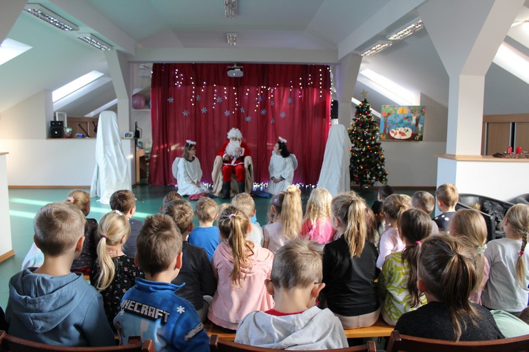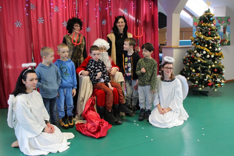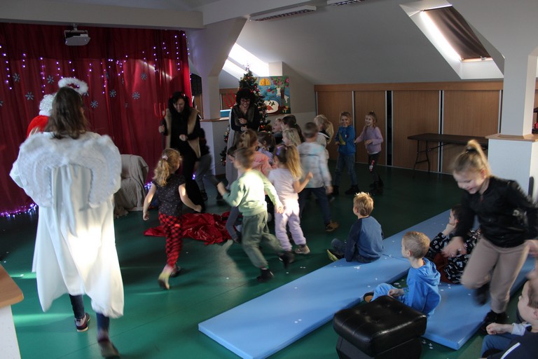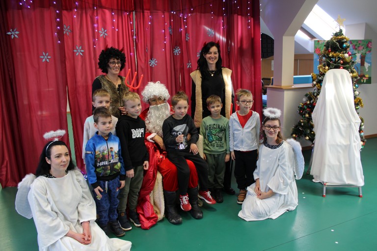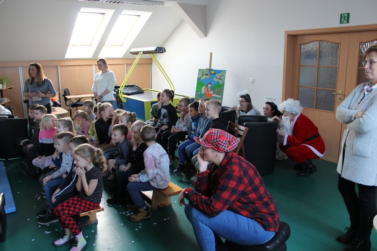 Przybyła spora grupa radosnych dzieci, które żywo reagowały i brały udział w całym przedstawieniu opowiadającym o Mikołaju, który zgubił swój worek. Na szczęście przy pomocy przedszkolaków, Mikołajowi udało się odzyskać worek z prezentami i wszyscy byli zadowoleni. Dziękujemy naszej bardzo młodej publiczności za dobrą zabawę, gromkie brawa i pyszny upominek.